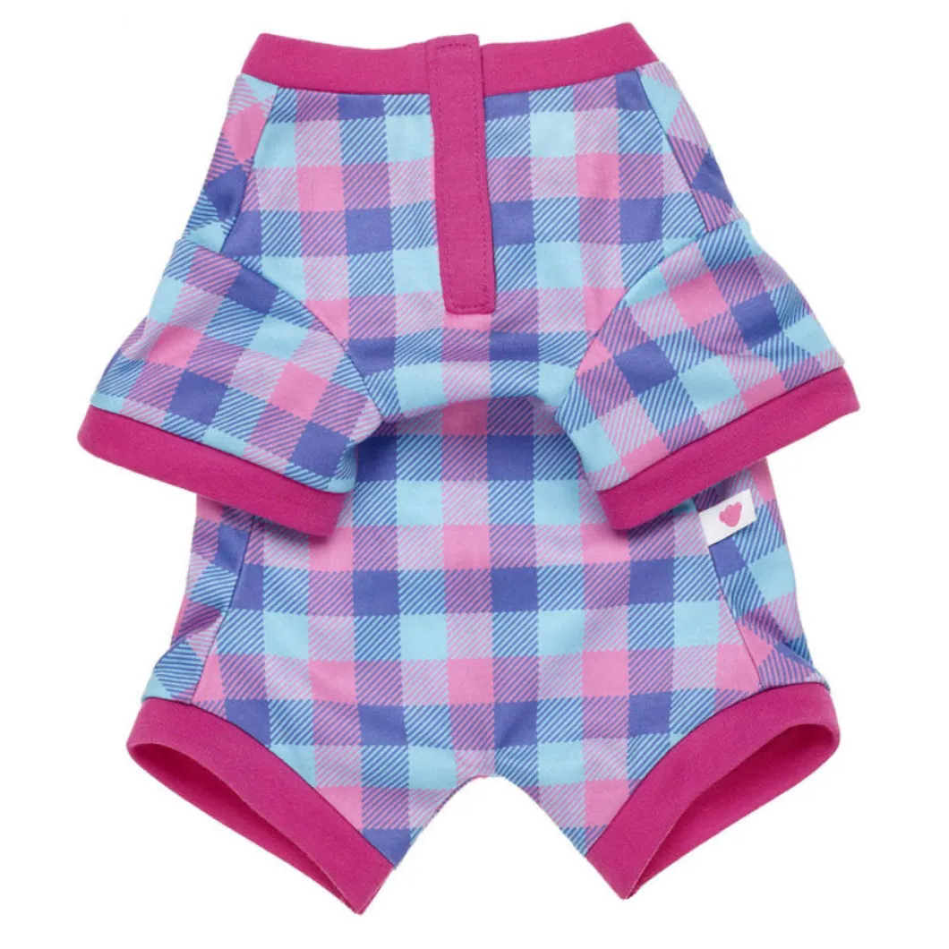 ¡Este pijama con cuadros escoceses de color rosa está hecho especialmente para amigos peludos de cuatro patas! haz que tu amigo peludo se vea genial aun a la hora de ir a dormir, nada mejor que una linda y comoda pijama para descansar.