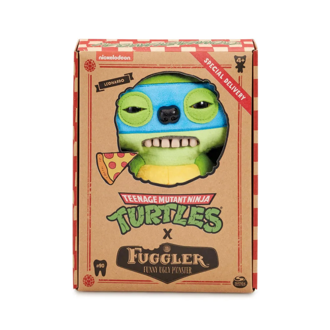 ¡Cowabunga! Leonardo, el líder de las Tortugas Ninja, se ha transformado en un adorable y divertido monstruo Fuggler! Este peluche de edición limitada de 9 pulgadas presenta un diseño único con los colores característicos de Leonardo, dientes de aspecto humano, ojos vacíos y un comportamiento impredecible. Leonardo viene en su propia caja de pizza, listo para unirse a tu colección de Teenage Mutant Ninja Turtles o para convertirse en un nuevo amigo peludo. ¡No te pierdas esta oportunidad de tener a Leonardo Fuggler en tus manos!