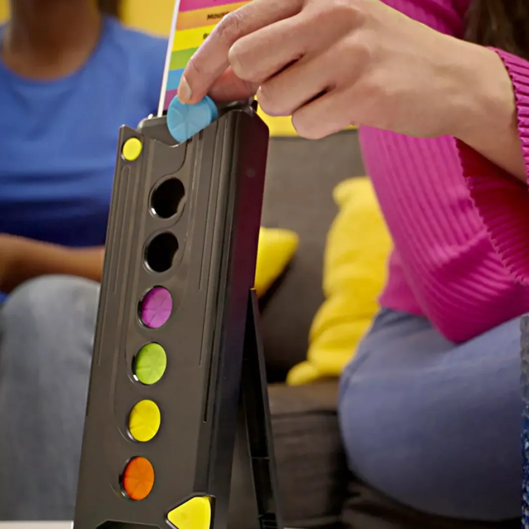 En el juego de fiesta Drop Trivia, los jugadores tienen todas las respuestas, ¡solo tienen que soltarlas en orden! Este juego de trivia electrónico de acción rápida se juega en tan solo 15 minutos. Cada equipo se turna para intentar adivinar el orden correcto de las respuestas para sumar puntos. Por ejemplo, clasifica 6 álbumes de debut del menos reciente al más reciente. Los jugadores hacen sus conjeturas soltando discos en la torre y ganan puntos por las respuestas en los lugares correctos. Para una experiencia similar a la de un programa de juegos, la torre guía a los jugadores a través del juego con comandos de voz y efectos de sonido. ¡Después de 4 rondas, el equipo con más puntos gana!