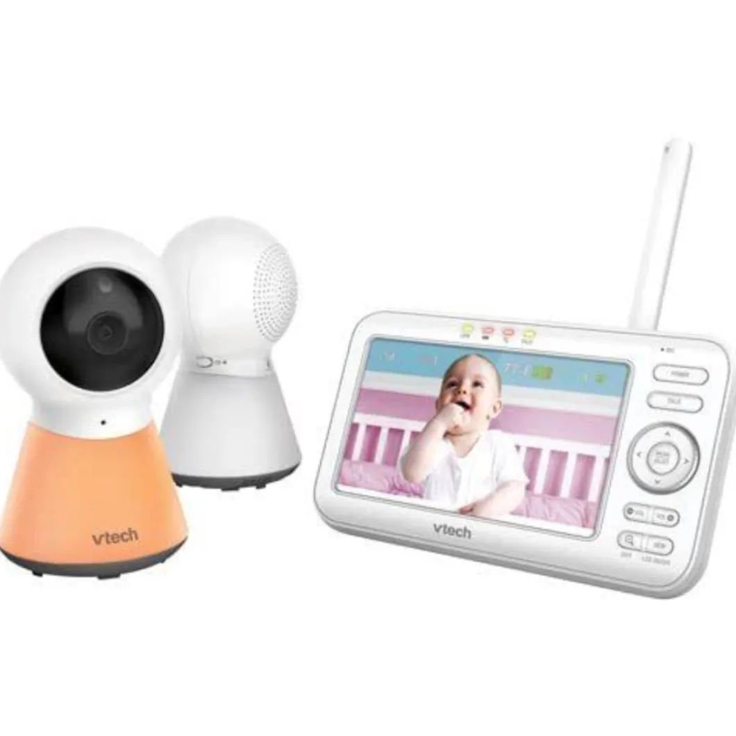 Controle a su pequeño con una gran pantalla LCD de 5 pulgadas en el vigila bebés con video digital VTech VM5254 con luz nocturna. Calme a su bebé con la luz nocturna multicolor, las canciones de cuna y los sonidos suaves que se reproducen directamente desde la unidad para bebés. Además, puede asegurarse de que su bebé esté cómodo controlando la temperatura de la habitación del bebé que se muestra directamente en la gran pantalla LCD de 5 pulgadas. Lo mejor de todo es que puede registrarse durante la siesta o después del anochecer gracias a la visión nocturna automática por infrarrojos.