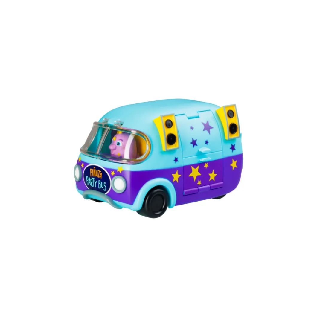 ¡CELEBRA UNA FIESTA DE PIÑATA EN EL PARTY BUS! Incluye 3 accesorios de juego: 2 parlantes extraíbles y 1 bola de discoteca extraíble, puertas que se abren y ruedas giratorias. Muestra todos tus Smashlings favoritos dentro del Party Bus; las bisagras seguras garantizan que tu colección esté siempre protegida.