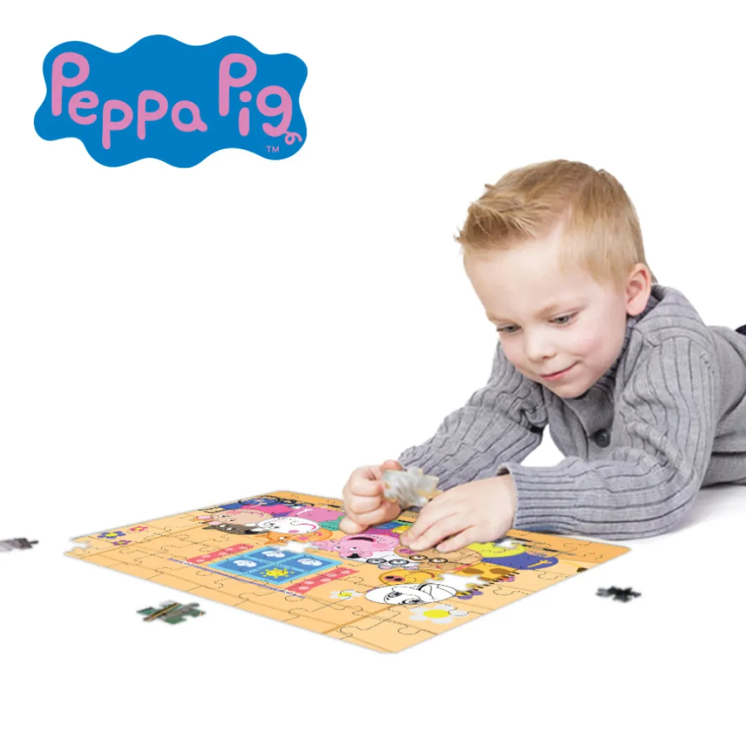 Diviértete con Peppa Pig en este divertido puzzle 2 en 1! Este puzzle de 48 piezas ofrece dos emocionantes experiencias en un solo producto. De un lado, encontrarás una imagen 3D llena de color con Peppa Pig y sus amigos en una encantadora escena. Al dar la vuelta, el puzzle revela un diseño 2D que los niños pueden personalizar utilizando las 5 fibras de colores incluidas.