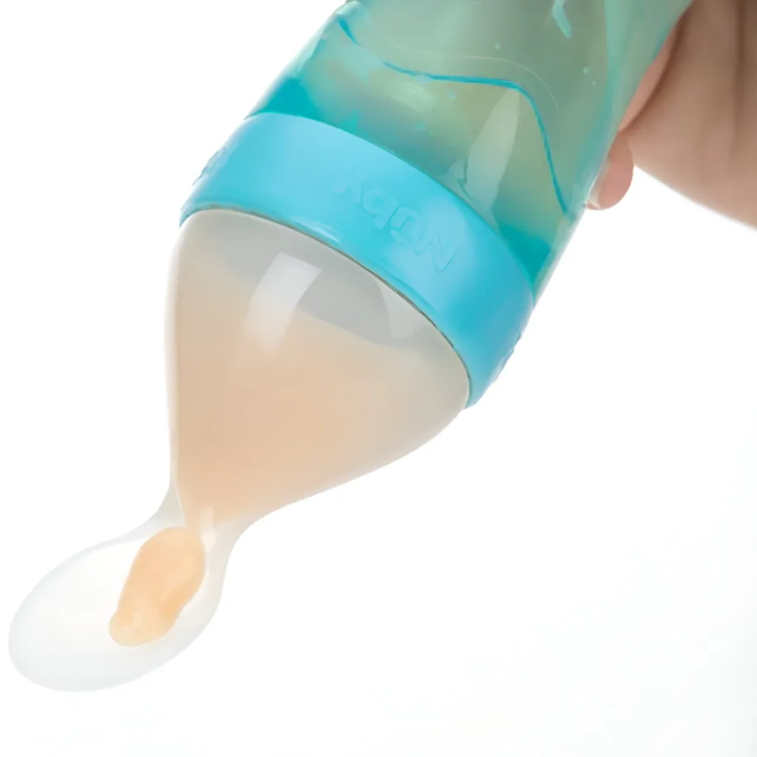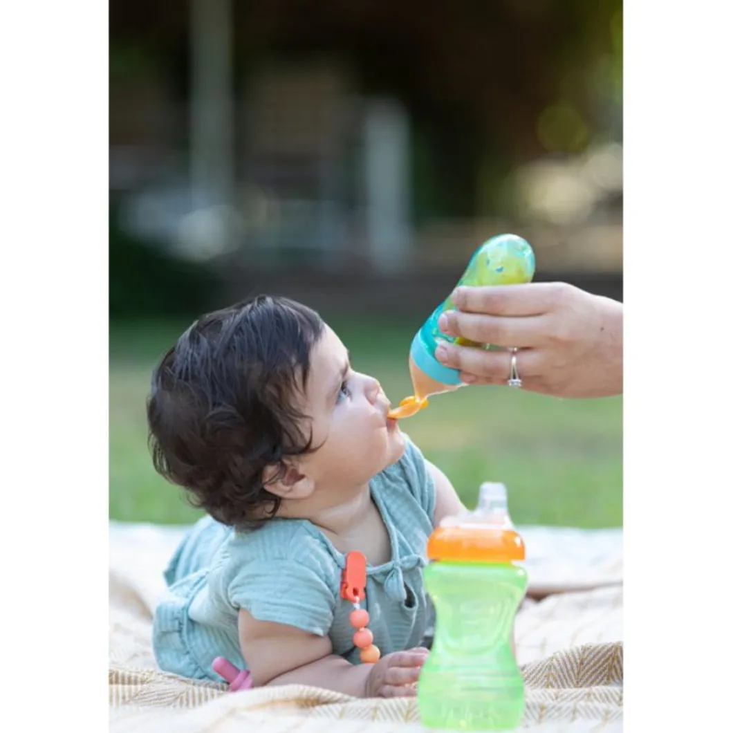 ¡Alimenta a tu bebe en cualquier lugar! Debido a que es seguro y facil nuby squeeze feeder es ideal para usar en cualquier lugar. La cubierta protectora evita que los alimentos goteen lo que hace que squeeze feeder sea ideal para viajar. Llene el comedero con la cantidad deseada de comida para bebes o cereal y apriete suavemente el comedero de silicona suave. se deja que la comida para bebes pase a traves de un agujero en el cuello de la cuchara y dentro del cuenco de la cuchara. el alimentador exprimible de nuby tambien es ideal para la leche y la formula. ¡la hora de comer nunca ha sido tan facil!