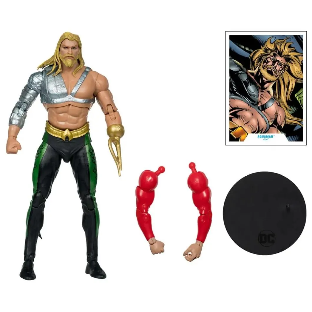 Sumérgete en el poder y la majestuosidad de Aquaman, Figura a escala de 7” el legendario Rey de la Atlántida. Mucho más que alguien que «habla con los peces,» Aquaman es un guerrero imparable con fuerza sobrehumana y habilidades telepáticas que lo convierten en una fuerza imponente, tanto en la tierra como en el mar. Como miembro fundador de la Liga de la Justicia, ha luchado junto a los héroes más grandes del mundo, defendiendo su reino y el planeta de las mayores amenazas del universo. Subestimar al Rey del Océano es un riesgo que nadie debería correr.