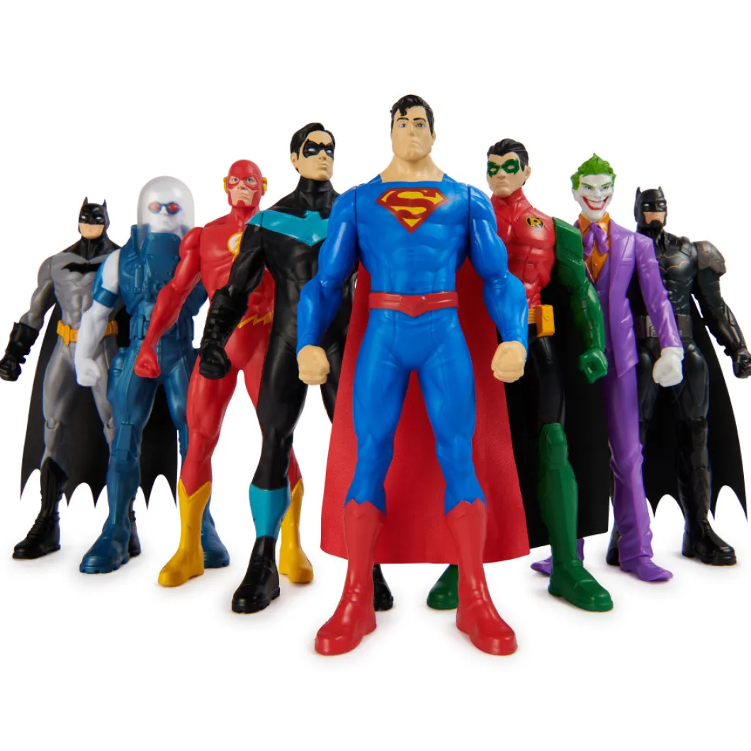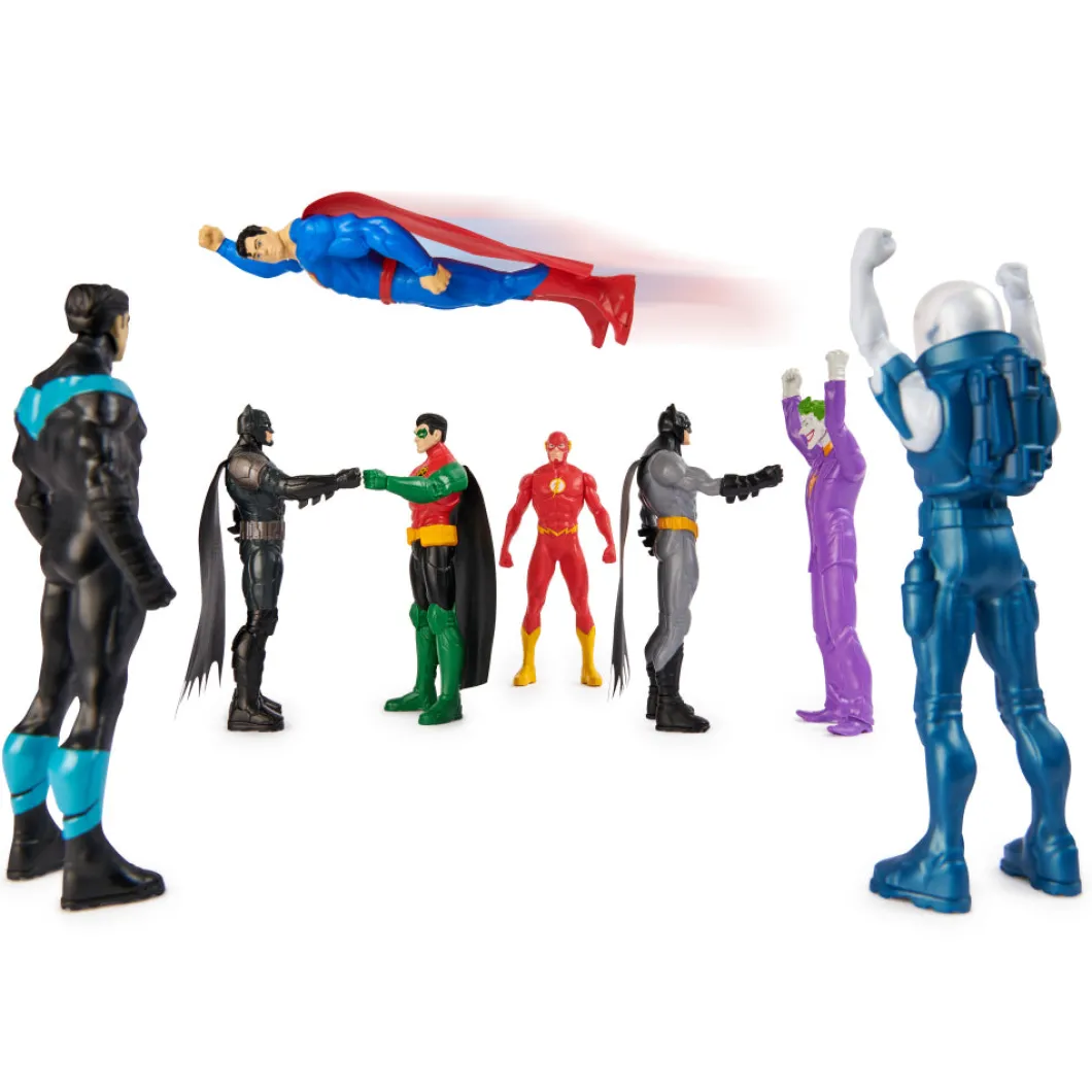 ¡Crea tus propias aventuras épicas de superhéroes y supervillanos con las figuras de acción de DC! Exclusivo pack de 8 figuras de 6″. La forma más fácil de tener tus 8 super héroes favoritos!