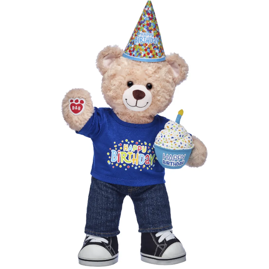 ¡Dulce cumpleaños! Los cumpleaños son un acontecimiento muy importante, así que celébralos al estilo Build-A-Bear. Este cupcake azul especial es un accesorio dulce para cualquier amigo peludo. El colorido cupcake se adhiere a las patas de un amigo peludo con bandas elásticas y tiene una vela de juguete encima.
