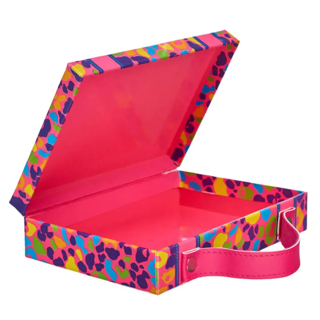¡Reúne las pertenencias de tu amigo peludo y sal a la carretera con esta linda maleta! Esta maleta rosa brillante tiene un patrón colorido de corazón y cabeza de oso, agregandole alegria y estilo al look de tu amigo peludo. ¡Perfecta para los paseos acompañados de tu amigo peludo!