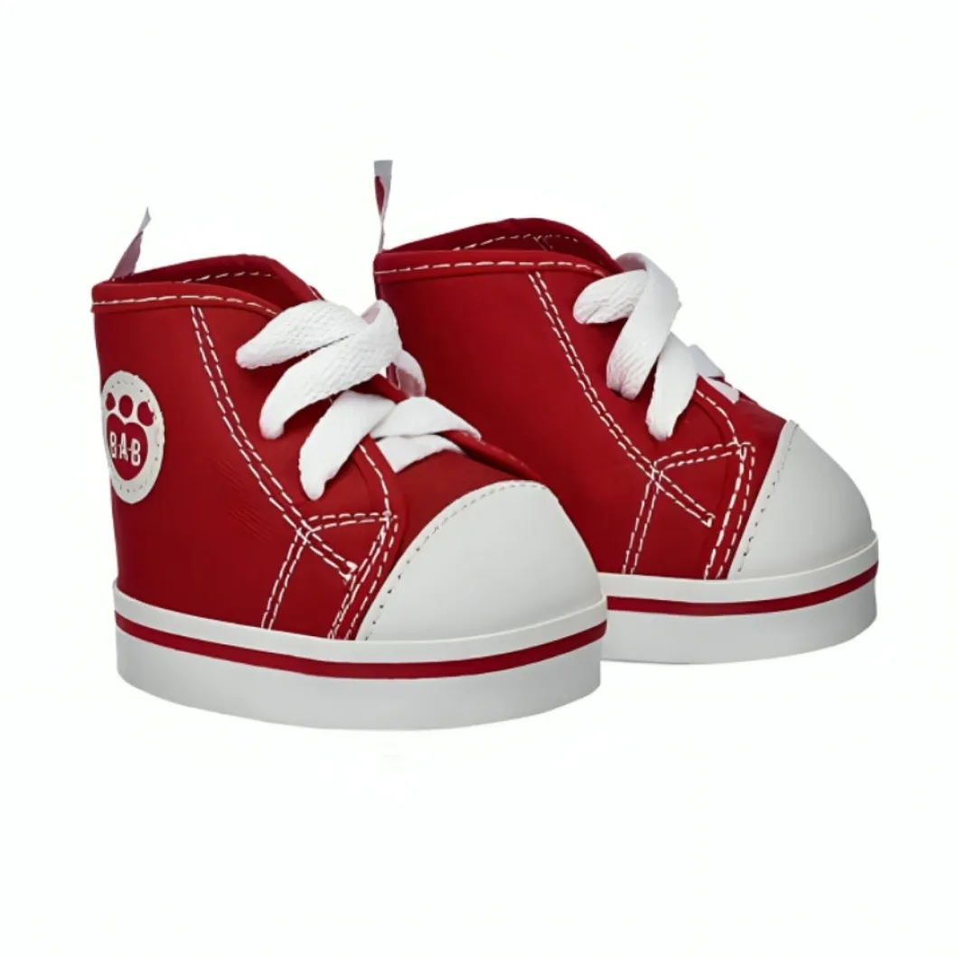 Zapatillas altas de lona roja ¡Átate los zapatos de tu amigo peludo y empieza a caminar! Estas clásicas zapatillas altas de lona roja para peluches quedan geniales en las patitas de cualquier amigo peludo. ¡Haz que tu amiguito luzca a la moda con estas zapatillas! ¡Lucirá genial!