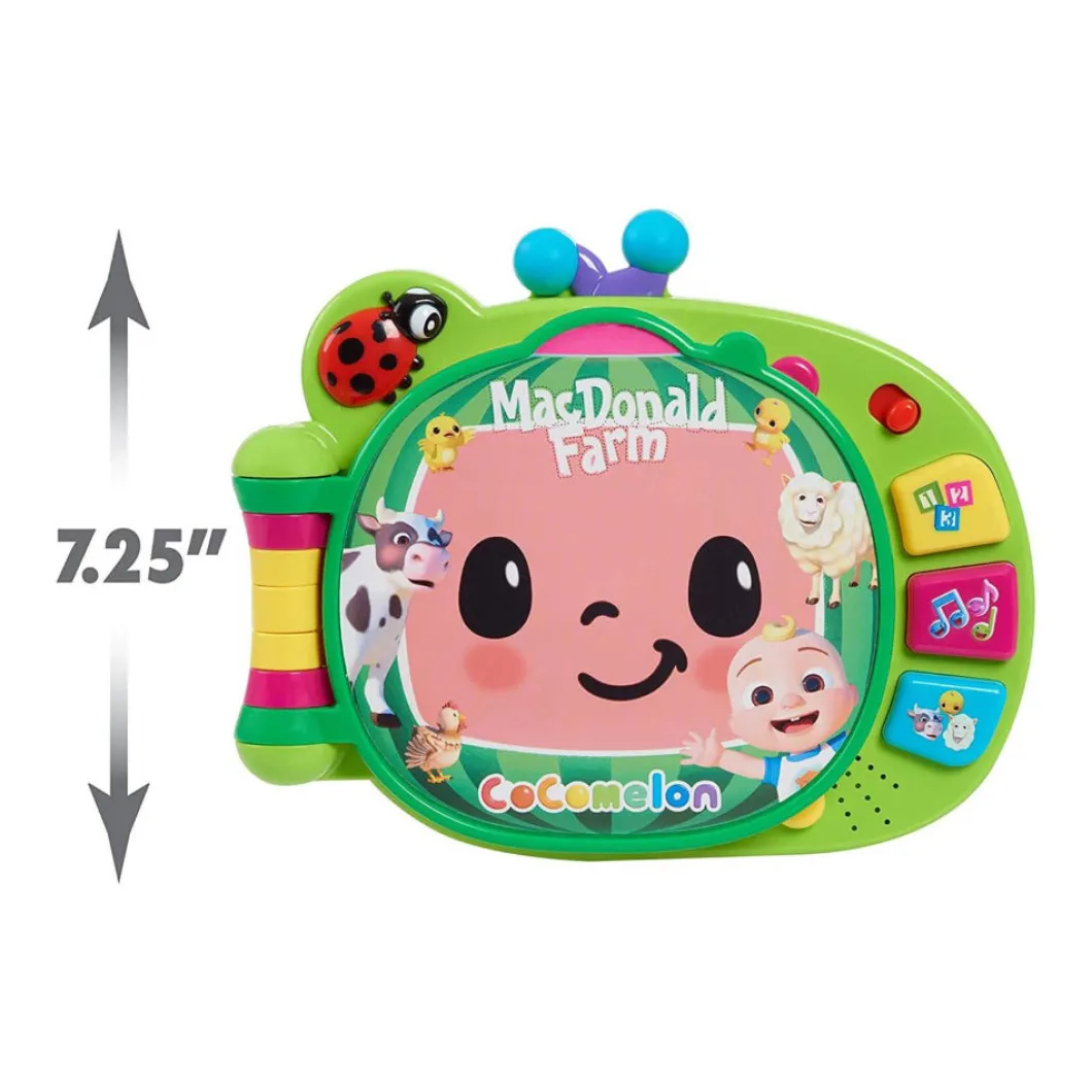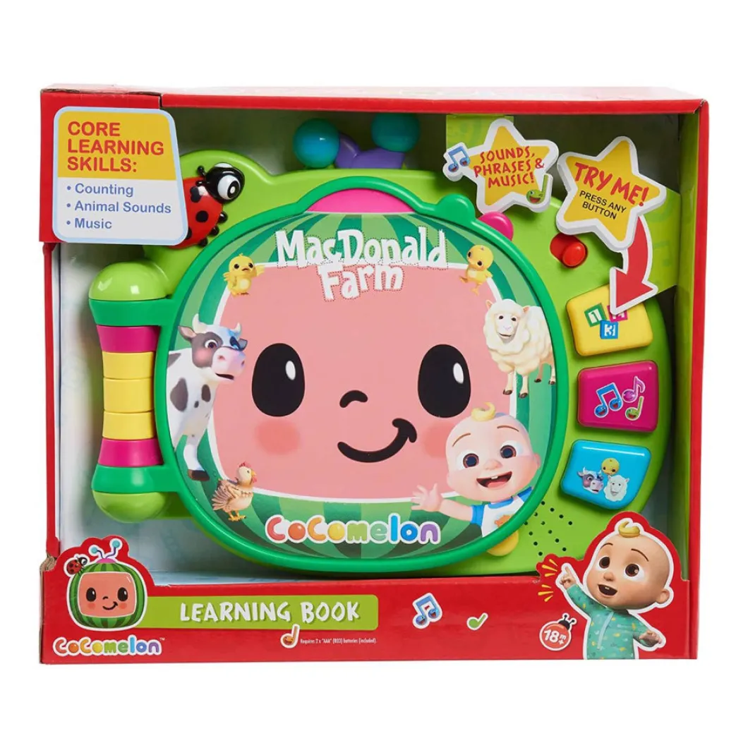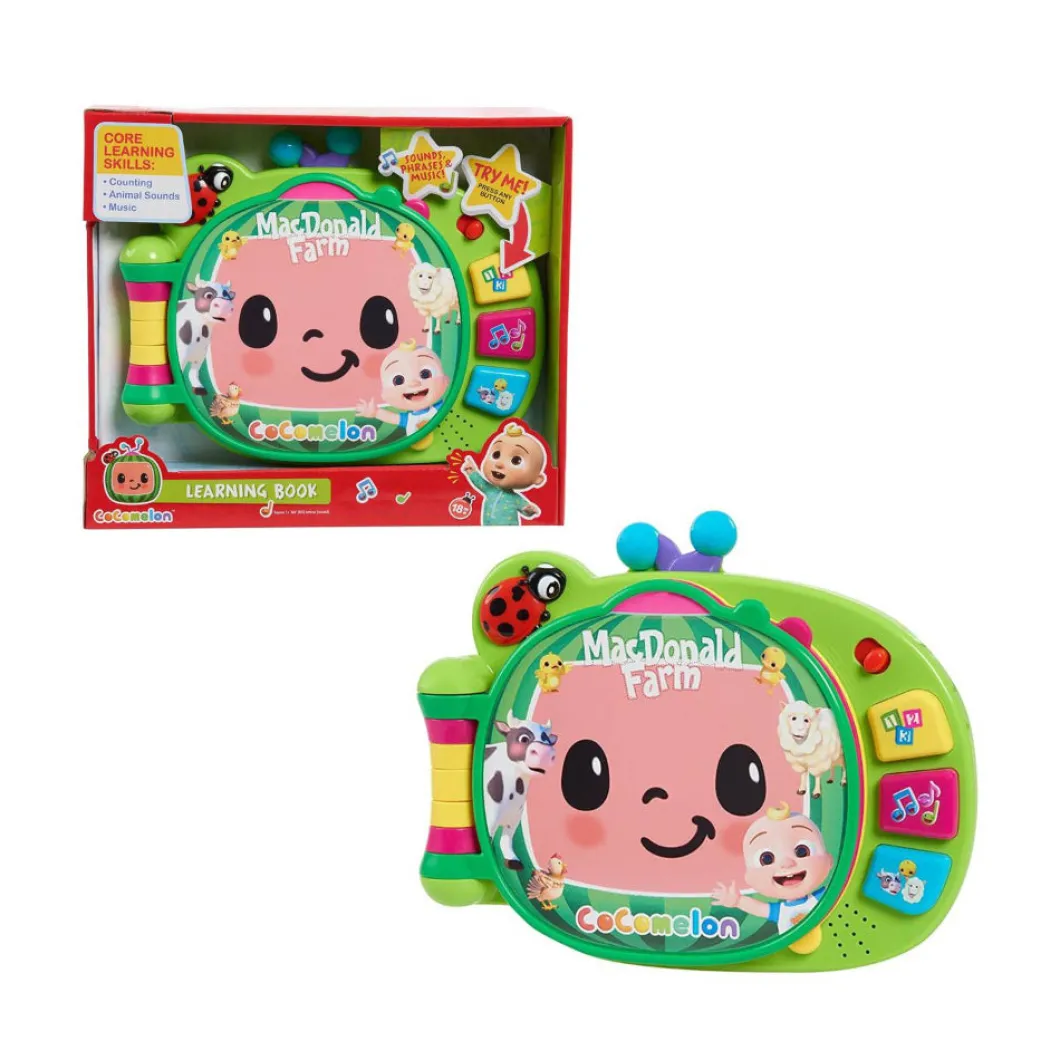 Es hora de Aprender y jugar con JJ, Únete a JJ en una aventura de aprendizaje en la granja con el libro de aprendizaje CoComelon. Este divertido libro interactivo tiene más de 50 frases de aprendizaje y cuenta con 3 modos de juego: música, números y sonidos de animales todos en inglés. Los niños pequeños, los niños en edad preescolar y los padres pueden cantar, Old MacDonald Had a Farm, mientras miran imágenes de JJ con varios animales de granja. Presiona cualquiera de los 3 botones coloridos para escuchar números, música o sonidos de animales.