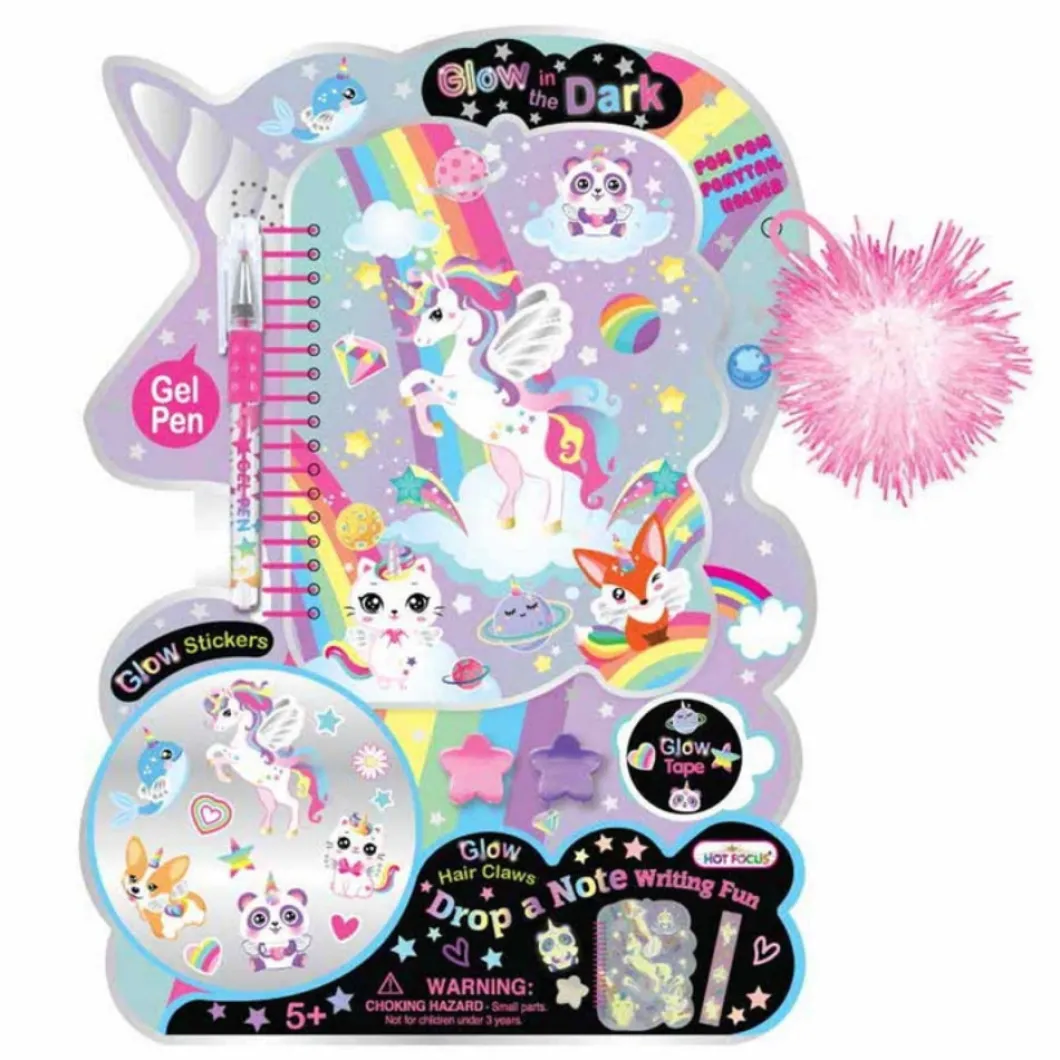 El cuadernillo Unicornio Escritura Brilla en la Oscuridad de la marca HOT FOCUS es perfecto para que las niñas logren expresar sus emociones y se sientan a la moda. Este set de libreta con llavero y stickers es perfecto para acompañar los días de tu pequeña. Sin duda este set será un gran regalo para las pequeñas fasionistas y glamurosas. ¡Agregálo al carro de compras y sorprendelas con este lindo diseño!