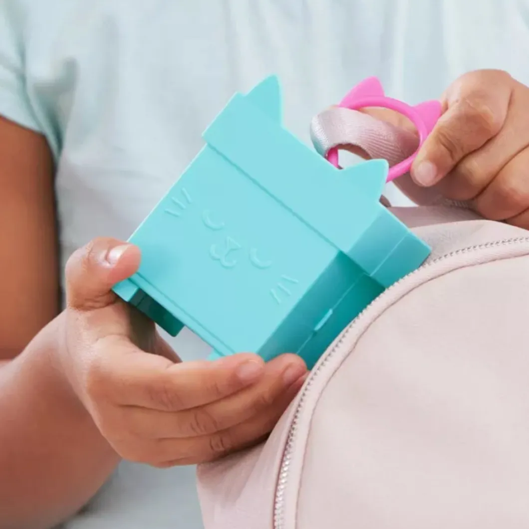 ¡Disfruta de la diversión del juego de simulación sobre la marcha con el juego con clip Gabby’s Dollhouse! Este juego portátil presenta a Cakey Cat, el fantástico amigo de Gabby en la cocina de la casa de muñecas, y viene con una habitación de casa de muñecas en miniatura con un clip de mochila de plástico, ¡para que puedas llevarlo contigo a cualquier parte! A los fanáticos de la serie Gabby’s Dollhouse les encantará colgar este minijuego de una bolsa o mochila, ¡para que puedan llevar sus emocionantes aventuras en la casa de muñecas a donde sea que vayan! Lleve su minijuego con usted en el automóvil, en un tren o incluso en un avión y una vez que esté sentado, abra el juego para revelar una habitación de mini casa de muñecas, ¡para que pueda revivir sus escenas favoritas del espectáculo! Luego, tal como lo hace Gabby al comienzo de cada episodio, abre la caja de tu casa de muñecas y descubre el accesorio sorpresa, ¡un pastel con forma de gatito, para usar en tu aventura de juego! Cuando termine el tiempo de juego, coloque a Cakey Cat y sus accesorios dentro del juego, ciérrelo y luego cuélguelo en su mochila hasta que sea hora de volver a jugar.