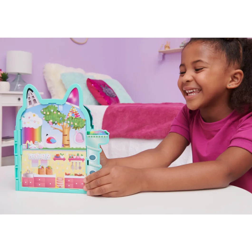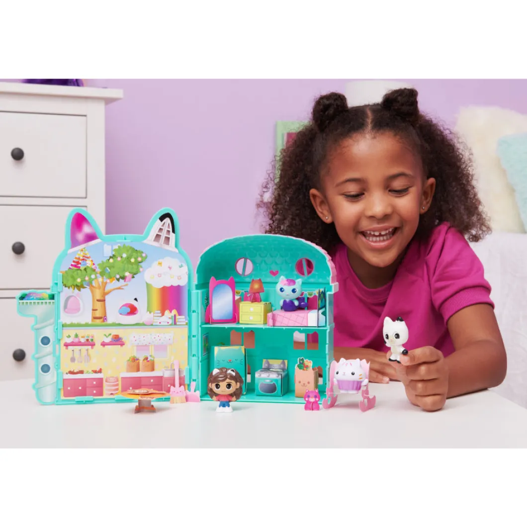 EL DE JUEGO PEQUEÑA CASA DE GABBYS DOLLHOUSE ¡Es hora de ponerse diminuto! ¡Con su forma inspirada en un gato y detalles coloridos, la casa Gabby’s Dollhouse se parece a la del espectáculo! Esta fantástica casa de muñecas para niños!