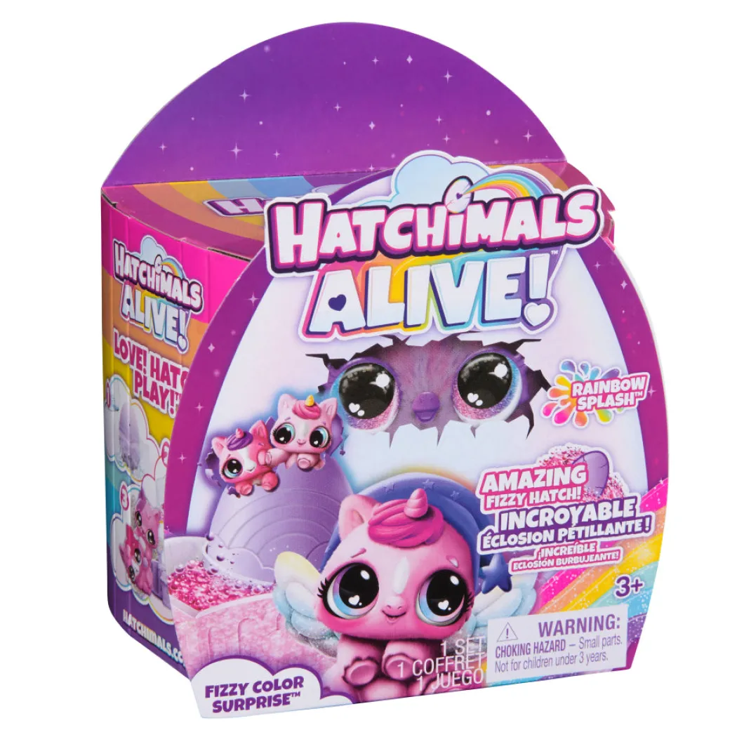 ¡Experimente una emocionante eclosión con Hatchimals Alive Rainbow Splash Fizzy Color Surprise! Con tu amor y cuidado, estos juguetones Hatchimals cobran vida de una manera nueva y colorida: huevos que eclosionan en el agua, cambiando el ¡El color del agua para que coincida con el personaje del interior! Cada Fizzy Color Surprise incluye 1 huevo con gemelos o trillizos en su interior, 2 o 3 pares de alas, un nido y 2 o 3 accesorios de crianza. Para comenzar a eclosionar, retira las alas del huevo, llena el nido con agua y coloca el huevo dentro. En segundos, el agua burbujea y cambia de color a medida que tus amigos comienzan a revelarse y rompen el huevo. ¿A quién incubarás? Coloca las alas en tus Hatchimals y usa los accesorios como un móvil, un chupete y más para agregar a tu narración. ¡Tus gemelos o trillizos incluso encajan en la pose más dulce! Colecciona los 6 juegos Fizzy Color Surprise (cada uno se vende por separado). Aquellos que disfrutan de las figuras de acción, los juguetes pequeños, las muñecas y los juegos en casas de muñecas adorarán los juguetes sorpresa de Hatchimals. Divertidos regalos de cumpleaños, regalos de Navidad y regalos para cualquier ocasión. ¡Dale vida a tus Hatchimals con Rainbow Splash Fizzy Color Surprise!