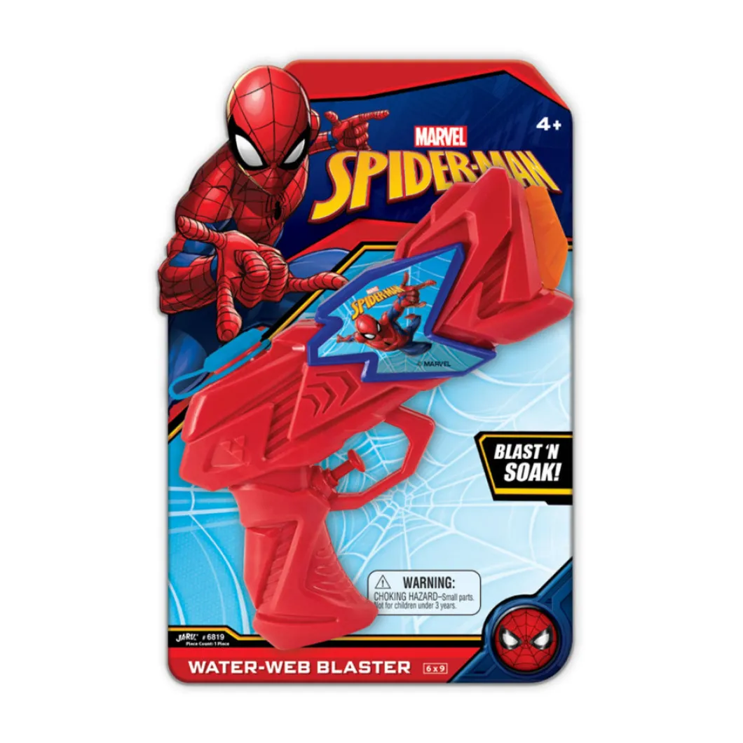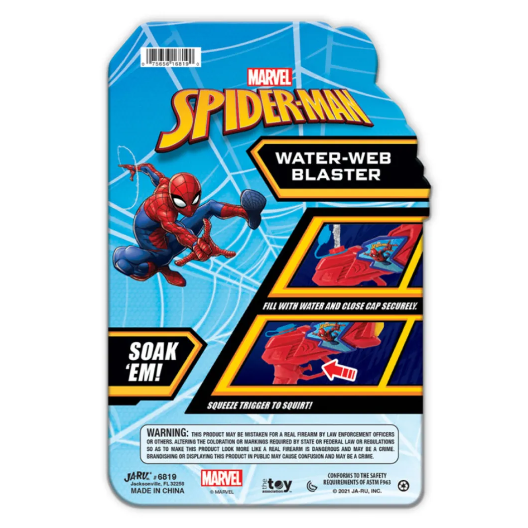¡Vence el mal! Marvel Water-Web Blaster es fácil de llenar y tiene una gran capacidad para más acción de explosión de salpicaduras. Con Spider-Man en el lateral.