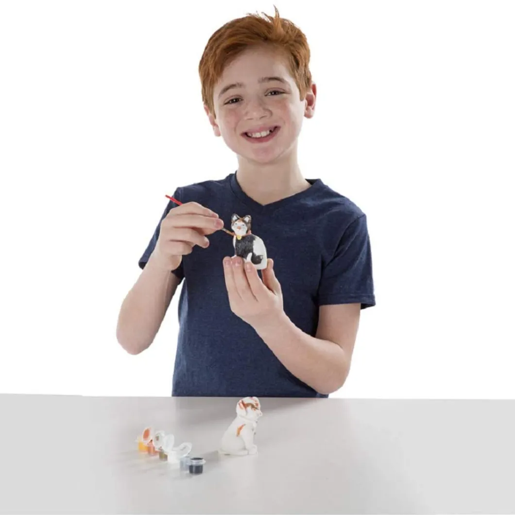 Colorido y creativo, ¡este kit de Melissa & Doug brindará horas de diversión! Estos adorables y simpáticos personajes están listos para emprender su primera aventura. ¡Y el único desafío será decidir cuál de los dos animales decorar y pintar primero! Este kit incluye 6 botellas de pintura no tóxicas que no dañan los colores y un cepillo que es fácil de limpiar.