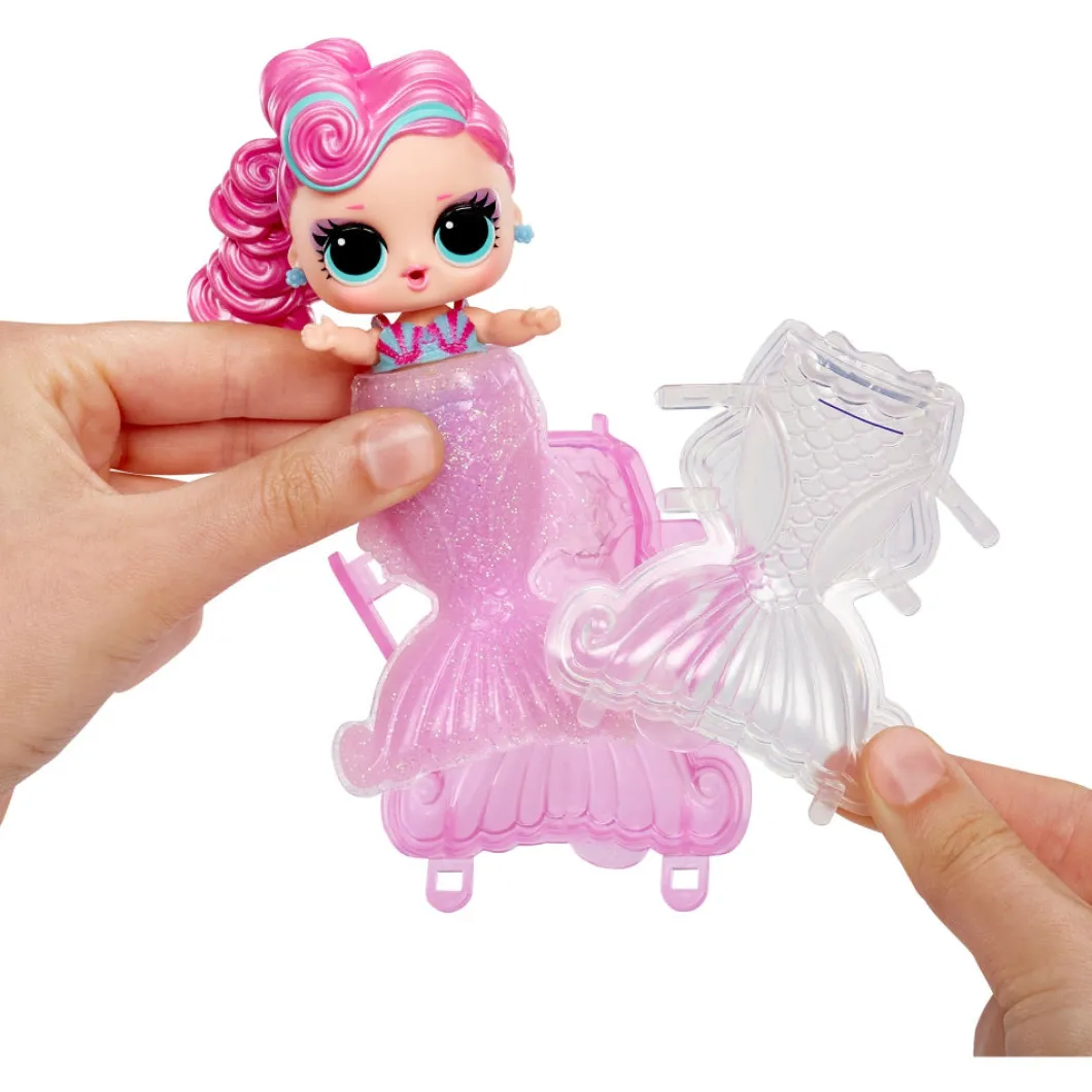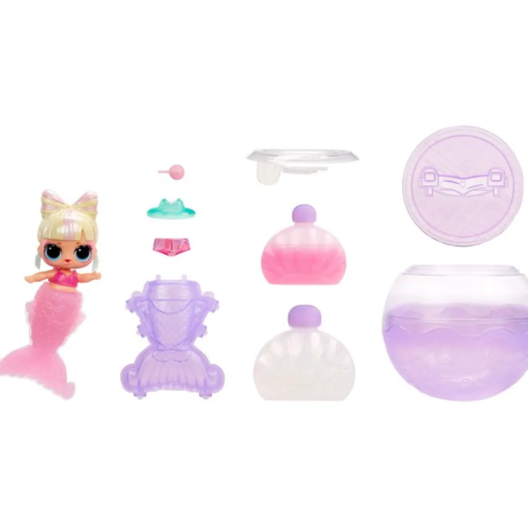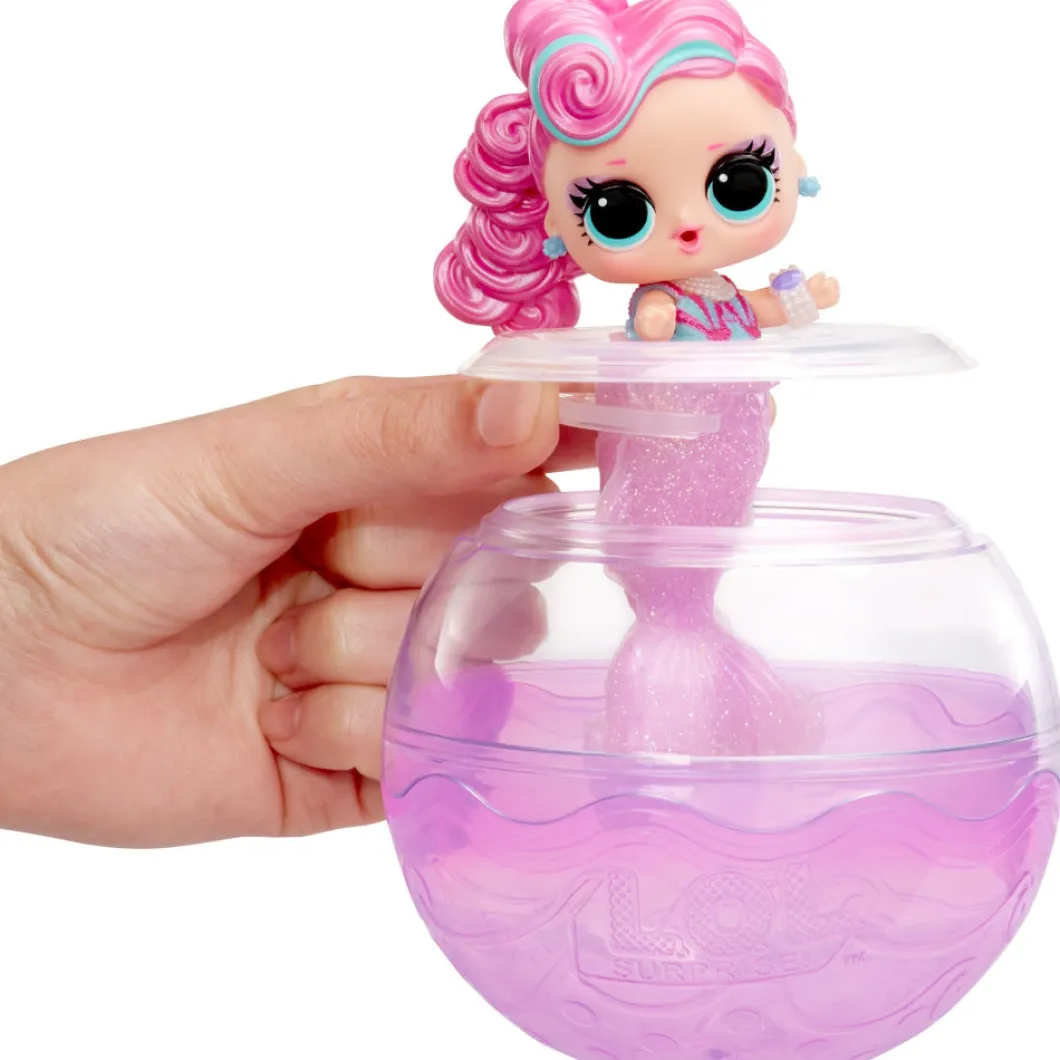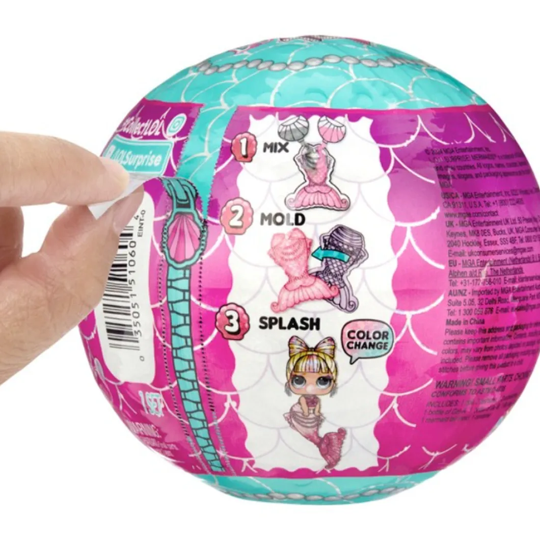 ¡Sumérgete en un mundo de sorpresas con L.O.L. Surprise! Mermaids! Esta bola temática trae una muñeca sorpresa que se transforma en sirena. Su cola de goma es transparente y tiene cavidades especiales que puedes llenar con líquido de diferentes colores, permitiéndote personalizarla a tu gusto. Además, la bola no es solo el empaque: puedes usarla como una pecera y agregar agua para mejorar la experiencia de juego. Colecciona todas las muñecas de esta fantástica serie inspirada en el océano y disfruta de la magia acuática mientras revelas sorpresas únicas en cada bola.
