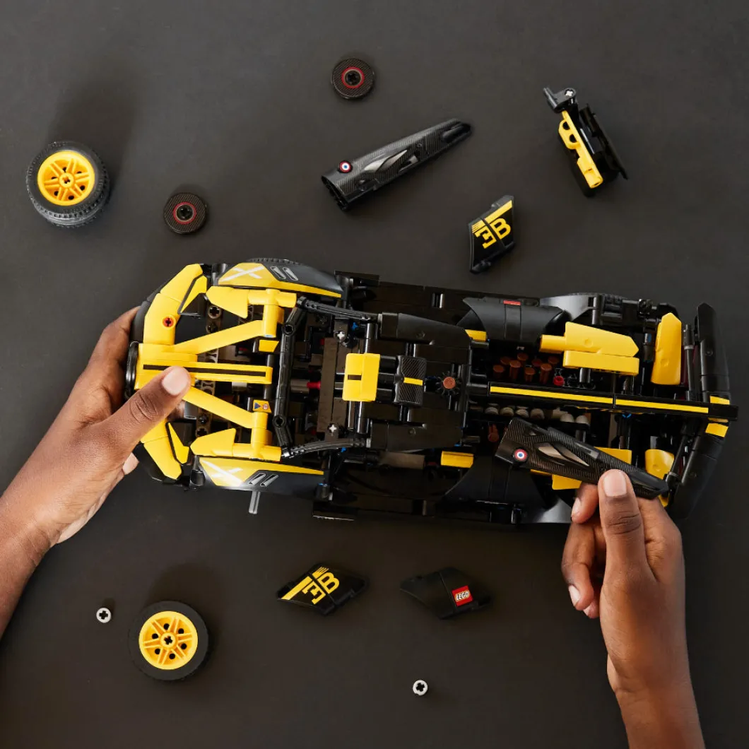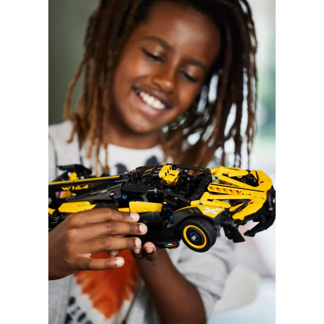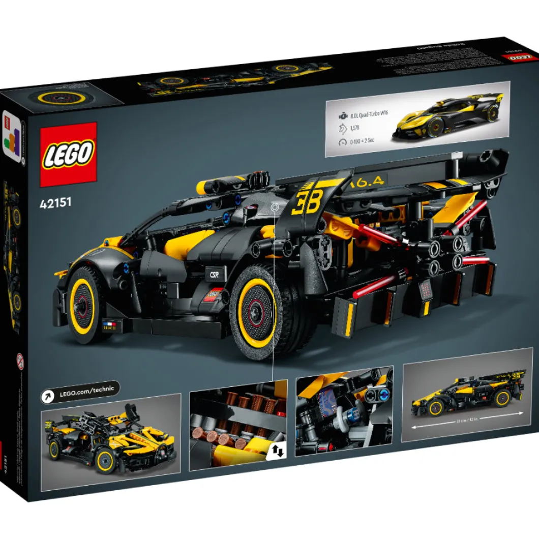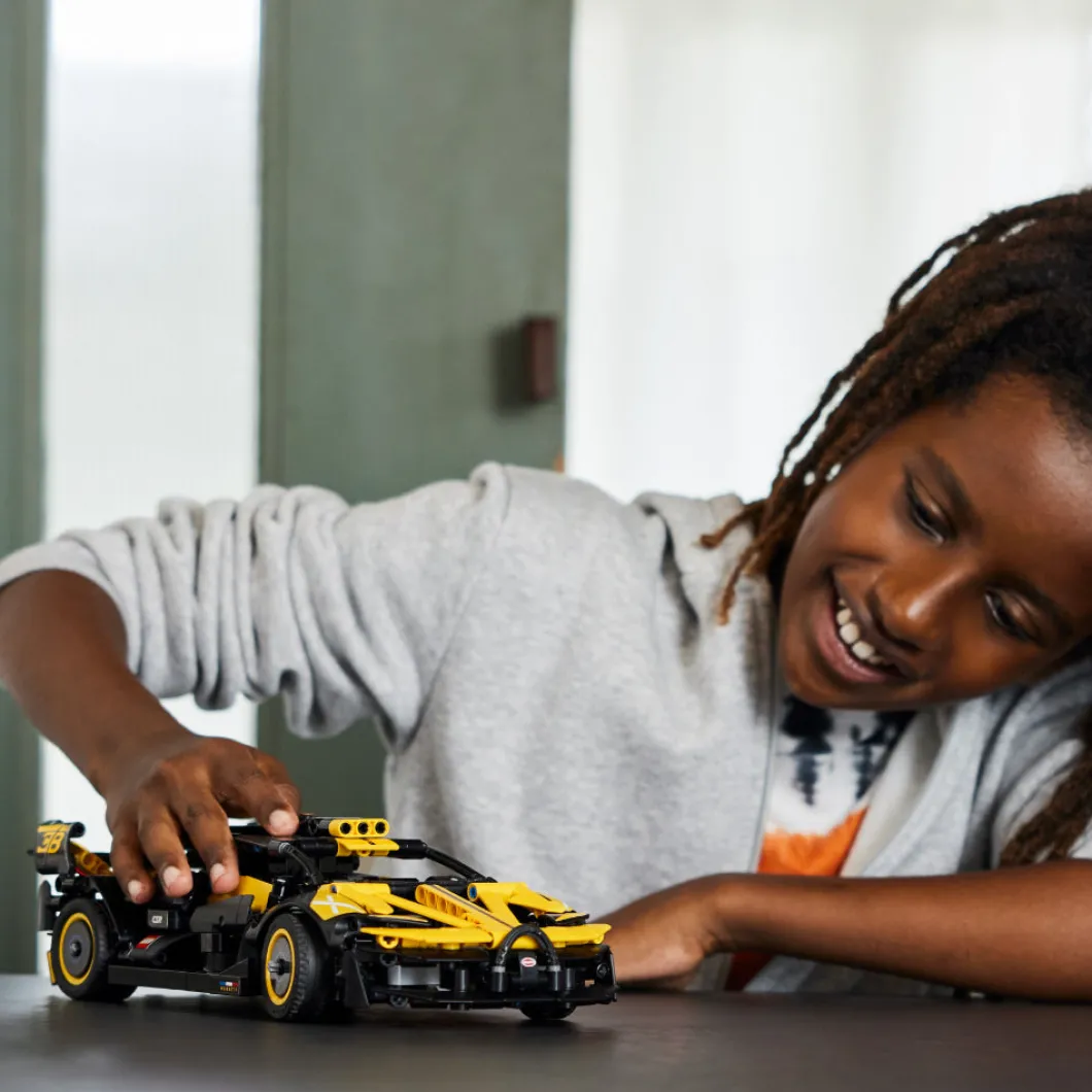 Anima a tu peque de 9 años o más a construir su propio modelo de un coche de carreras con el set LEGO® Technic Bugatti Bolide (42151). Disfrutará con el desafío de dar forma a los elementos llenos de autenticidad del bólido, como el motor W16 que funciona, la dirección y las puertas de tijera. El impresionante aspecto del coche acaparará toda la atención: tiene una presencia increíble con su fantástica combinación de colores en amarillo y negro y sus genuinos detalles en pegatinas. Después de construirlo y explorarlo, podrá exponer su modelo coleccionable con orgullo. Iniciación a la ingeniería Los sets de modelos construibles LEGO Technic reproducen movimientos y mecanismos de gran realismo que permiten a los jóvenes constructores LEGO adentrarse en el universo de la ingeniería de una manera accesible y práctica. La app LEGO Builder os guiará a tu peque y a ti en la sencilla e intuitiva aventura de construcción. Acerca y gira modelos en 3D, guarda sets y sigue vuestro progreso.