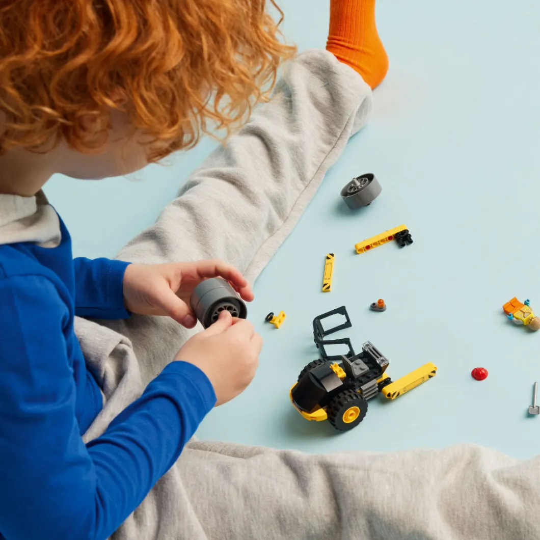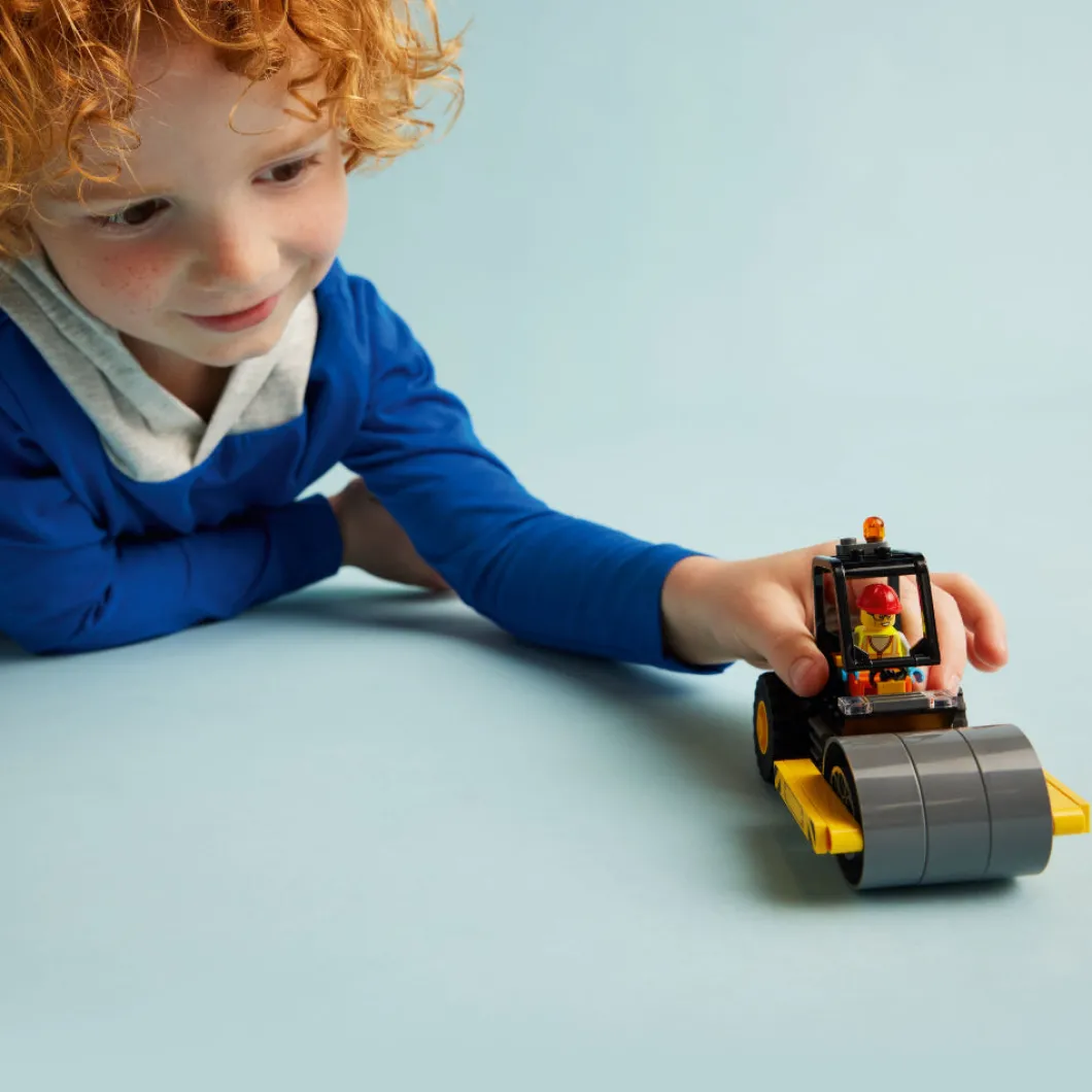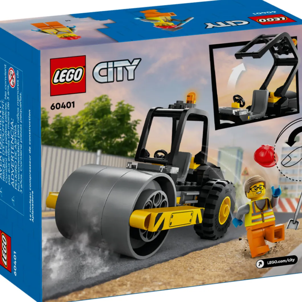 ¡Te presentamos la apisonadora más total de la ciudad! Con sus gruesos neumáticos y su brillante rodillo, la Apisonadora LEGO® City (60401) es ideal para fans de los camiones y los vehículos de obra de juguete. Como si fuera de verdad, cuenta con una luz de advertencia de juguete y una cabina para la minifigura de la conductora. Este divertido juguete estimulará la creatividad y la imaginación de los niños y las niñas de 5 años o más, y puede combinarse con otros similares de la gama LEGO City (a la venta por separado). Jugar con la Apisonadora no es lo único divertido. Los peques también disfrutan de una gratificante experiencia de construcción con una guía impresa fácil de seguir y, además, instrucciones digitales en LEGO Builder. Esta intuitiva app les permite acercar y girar versiones en 3D de sus modelos para visualizarlos mientras construyen. Los niños crecen rodeados de vehículos y máquinas; con los sets de construcción LEGO City Grandes Vehículos, ¡pueden explorarlos de cerca!