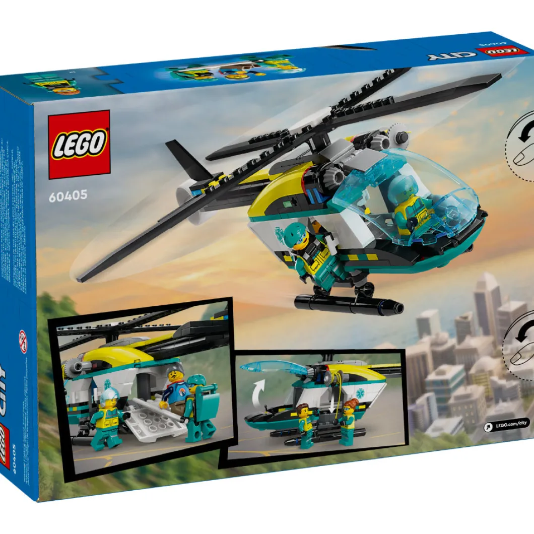Regala a tu pequeño héroe cotidiano el juego LEGO® City Helicóptero de Rescate para Emergencias (60405). Diseñado para mayores de 6 años, este set incluye un helicóptero de juguete con cabina, rotores giratorios, bodega de carga que se abre y cabrestante que funciona. Solo tienes que incorporar las minifiguras del excursionista, el piloto y el socorrista, la bengala de rescate y una pizca de imaginación, ¡y las horas de trepidantes juegos estarán servidas! Acompaña a tu peque en una emocionante aventura de construcción de juguetes con LEGO Builder, la app donde podrá explorar y guardar sets, seguir sus progresos, y acercar, girar y ver sus modelos desde todos los ángulos mientras los construye. Los juegos LEGO City contienen vehículos de juguete realistas, detalladas estructuras e inspiradores personajes para jugar con imaginación y sin límites. Combina este divertido set con otros de la gama LEGO City Grandes Vehículos (a la venta por separado) para crear aventuras aún más fabulosas.