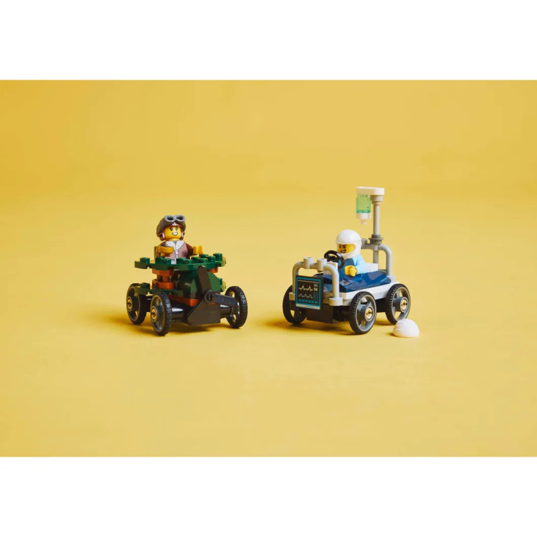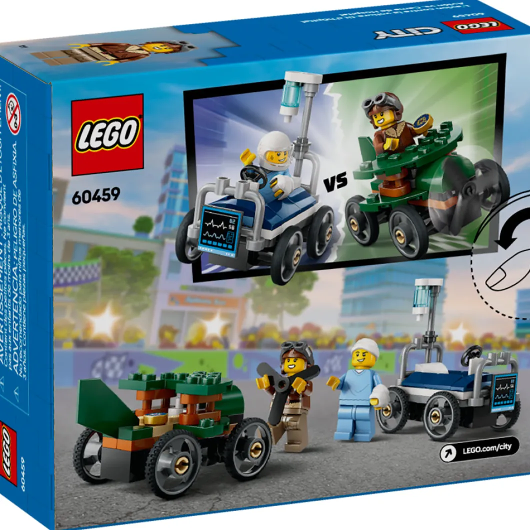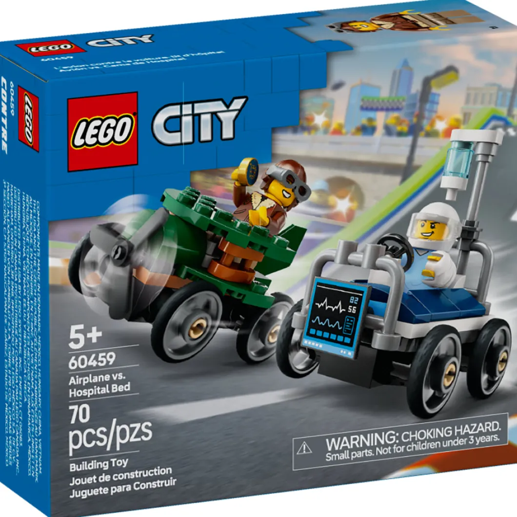 ¡Sorprende a tu pequeño fan de las carreras con el set LEGO® City Pack de Coches de Carreras: Avión vs. Cama de Hospital (60459)! Este divertido juguete para niños y niñas a partir de 5 años cuenta con 2 coches de carreras de juguete y 2 minifiguras. Los peques pueden enfrentar a la piloto en el avión de altos vuelos y el paciente en la veloz cama de hospital. ¿Quién ganará? ¡Toma asiento y vibra con las épicas carreras urbanas! Este set LEGO incluye una guía de construcción paso a paso impresa. A los niños también les espera una divertida aventura de construcción con la app LEGO Builder, donde podrán acercar y girar sus modelos en 3D, consultar su progreso y explorar y guardar otros juegos. Los sets LEGO City ofrecen atractivos vehículos, estructuras realistas y divertidos personajes que fomentan el juego imaginativo sin límites. Tu peque puede agregar este set con autos locos a otros de la gama LEGO City (a la venta por separado) para ampliar su mundo de posibilidades de juego.