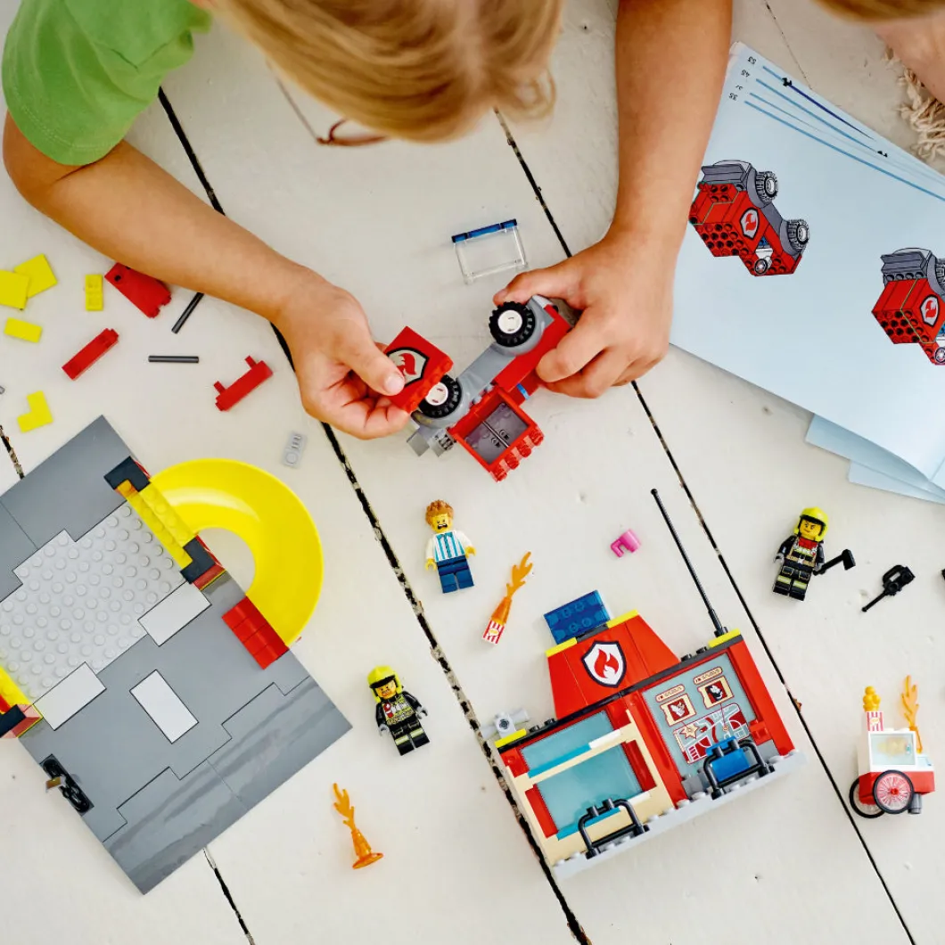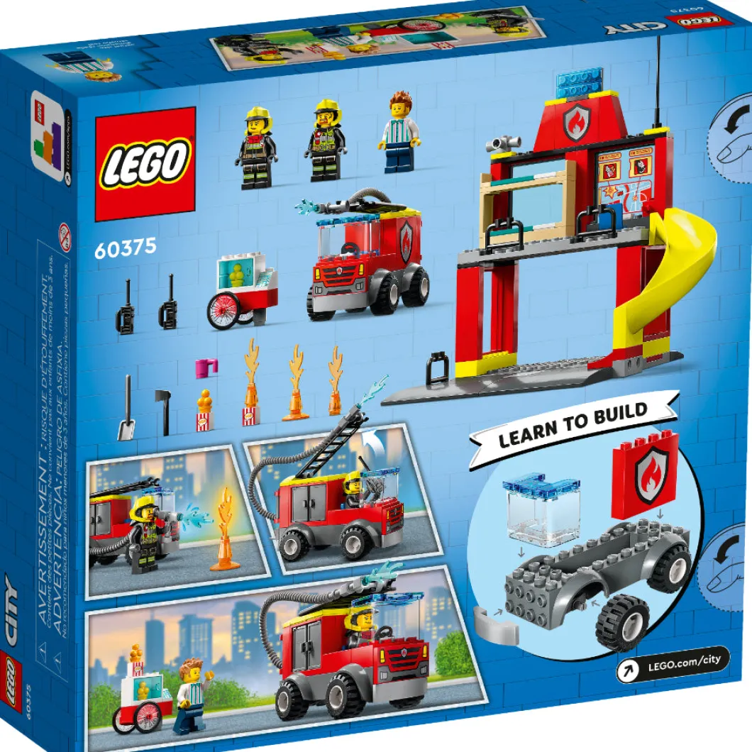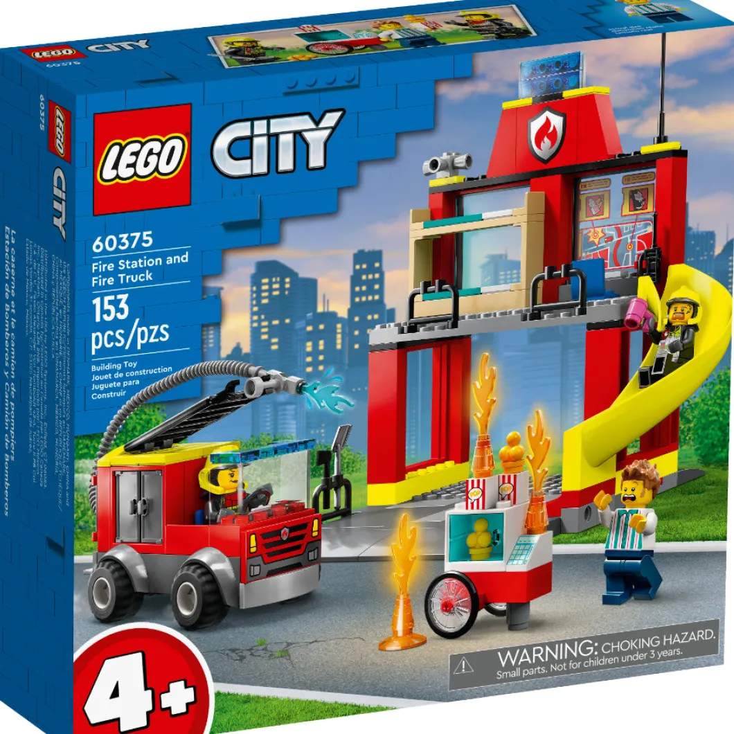 Prende la chispa de la imaginación de tu peque con el set LEGO® City Parque de Bomberos y Camión de Bomberos (60375), que incluye un parque de bomberos con camas, garaje y un divertido tobogán de emergencia, así como un camión de bomberos equipado con manguera flexible y escalera en el techo. Incorpora al juego el carro de palomitas, unas pocas llamas LEGO y las minifiguras del vendedor y los bomberos, ¡e interpreta apasionantes historias durante horas! Instrucciones impresas y digitales Este set 4+ fácil de construir viene con un ladrillo LEGO para principiantes, instrucciones en imágenes y la app LEGO Builder: una mentora digital con intuitivas herramientas que permiten a los niños visualizar el modelo mientras lo construyen. Explora el mundo jugando Los sets LEGO City 4+ contienen edificios, vehículos y divertidos personajes que estimulan el juego libre. Los peques aprenden sobre el mundo que los rodea mediante situaciones que representan la vida real de una manera emocionante.