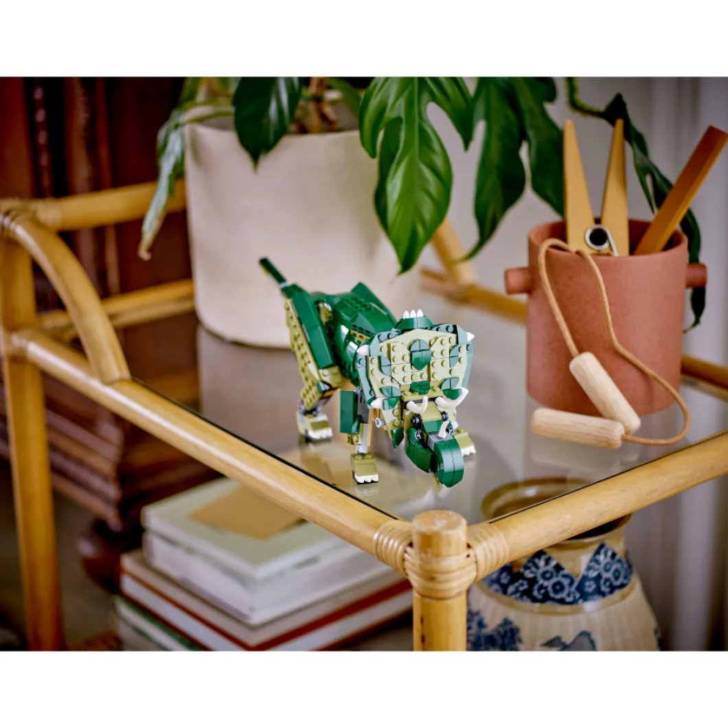 ¡Viaja atrás en el tiempo para vivir increíbles aventuras con el dinosaurio de juguete T. rex (31151)! Los niños y las niñas de 9 años o más pueden mover la cabeza, los pies, la cola, la mandíbula, las patas delanteras y traseras e incluso los dedos y los talones de este Tyrannosaurus rex articulado para colocarlo en diferentes poses. El T. rex y el nido que lo acompaña, con 2 elementos que representan huevos de dinosaurio, forman una impresionante pieza de exposición. Este set de construcción LEGO® proporciona a los pequeños un mundo de posibilidades de juego con los 3 dinosaurios de juguete que se pueden construir con los mismos ladrillos: el T. rex articulado, un aterrador Triceratops con 3 cuernos o un Pterodáctilo con grandes alas móviles. . Los kits de construcción de juguetes LEGO Creator 3en1 son fantásticos regalos para niños. Cada conjunto 3en1 les permite crear 3 modelos alternativos basados en sus mayores pasiones, desde animales y vehículos hasta detalladas escenas urbanas.