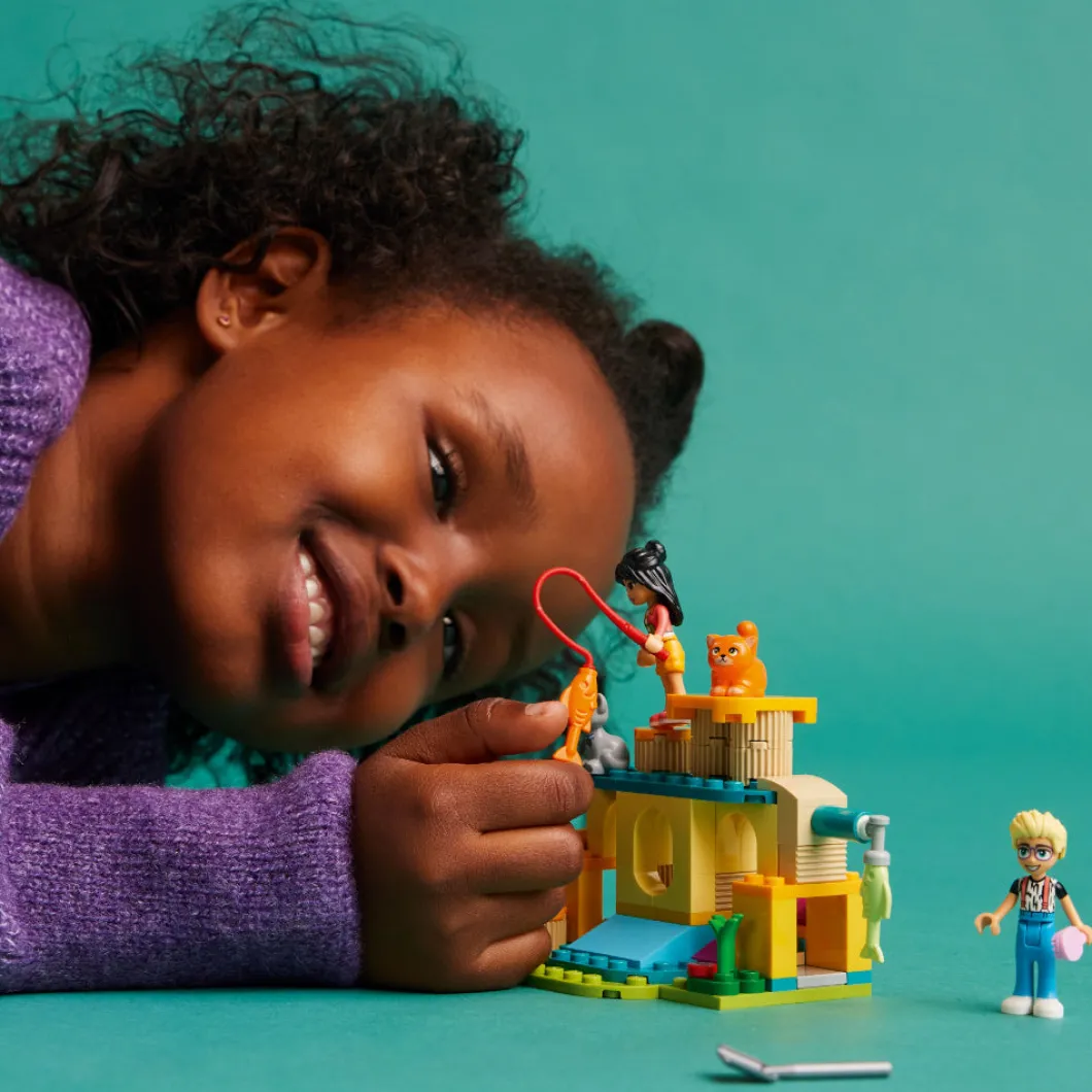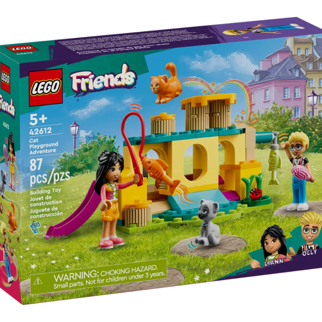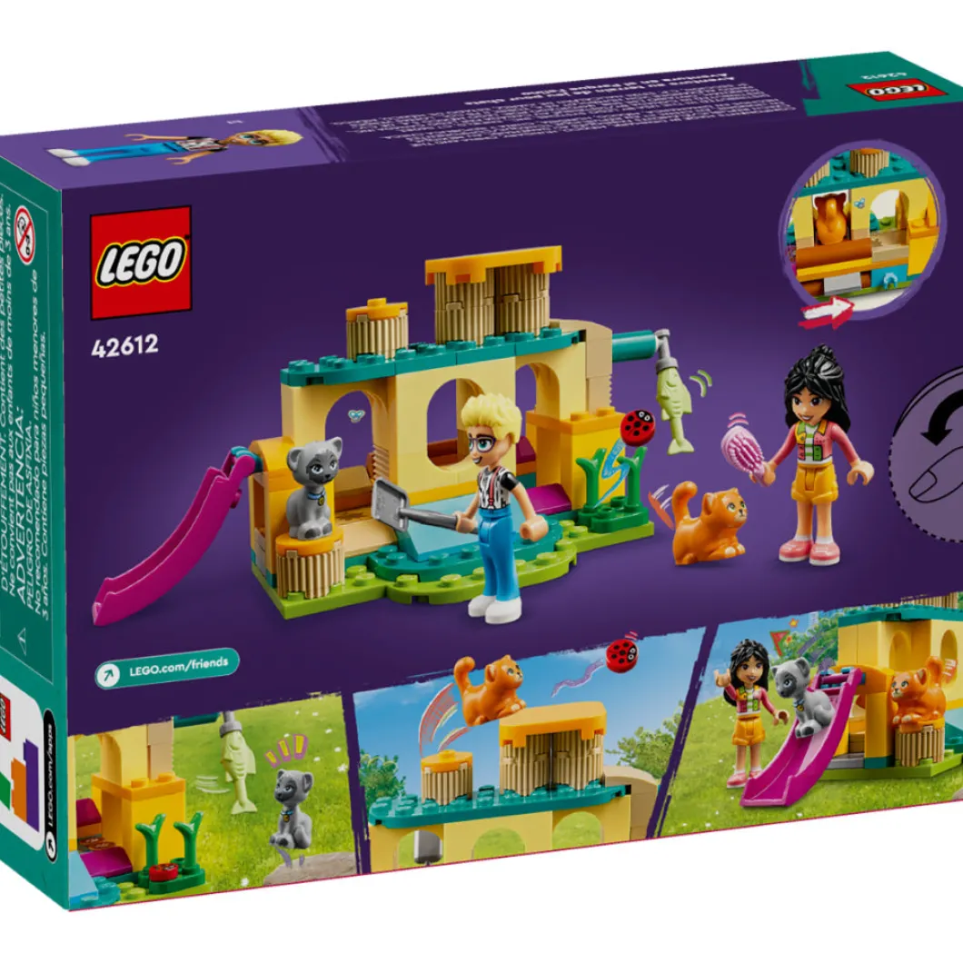 ¡Los amantes de los gatos se lo pasarán genial con el set LEGO® Friends Aventura en el Parque Felino (42612)! A las niñas y los niños de 5 años o más con pasión por los juguetes de animales les fascinará este set. Incluye un parque construible, 2 minipersonajes, 2 figuras de animales y accesorios para cuidar de las mascotas, como un juguete felino con forma de pez, hierba gatera, comida y un arenero. Los peques practican el juego simbólico mientras representan la historia en el parque felino al aire libre. Les encantará ayudar a Liann y Olly a jugar con los gatos. Hay un tobogán y un árbol gatuno, además de comida y agua, ¡e incluso un arenero en el que aparece popó de gato cuando los niños accionan una palanca! ¿Buscas los mejores juguetes para regalar? En el universo LEGO Friends, descubrirás más sets de construcción para niñas y niños que disfrutan jugando a interpretar historias. Ofrécele también a tu peque una sencilla e intuitiva aventura de construcción con la app LEGO Builder.