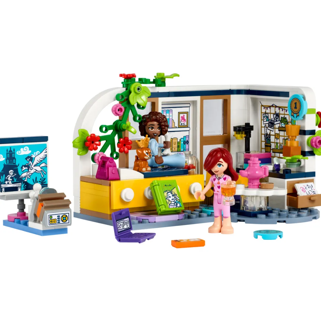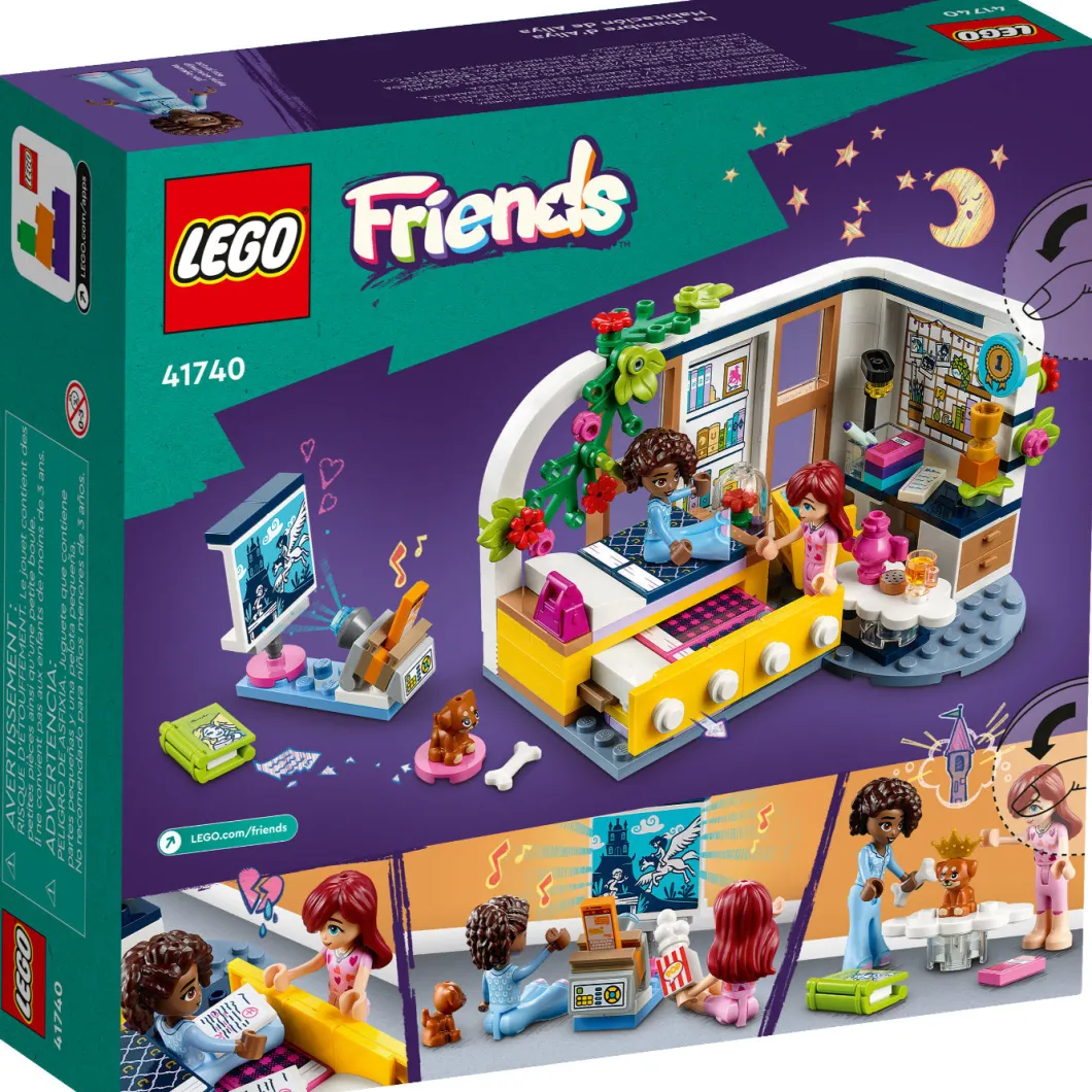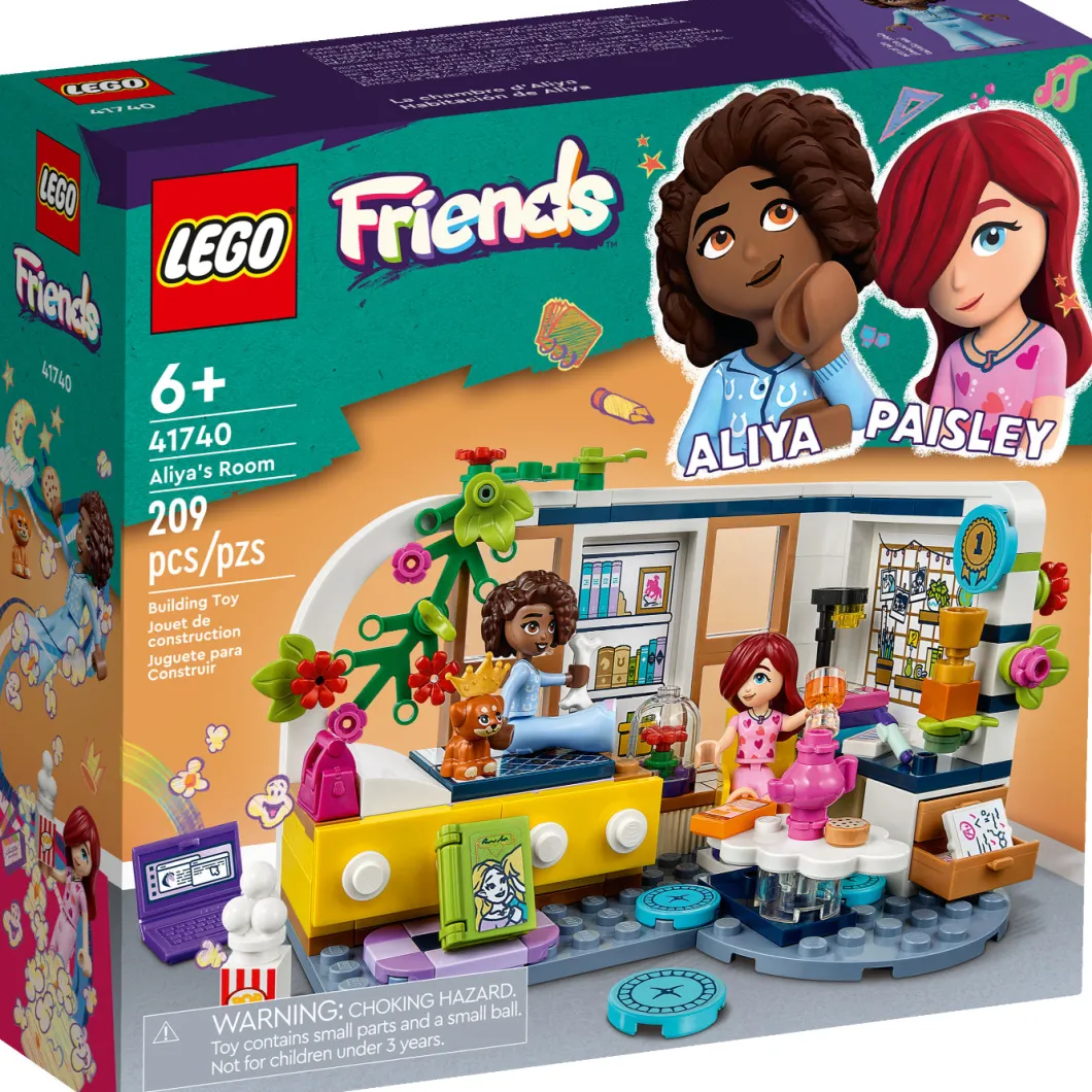 Los niños de 6 años o más crearán divertidas historias con el set de construcción LEGO® Friends Habitación de Aliya (41740). Explorarán todo lo que contiene mientras Paisley y Aliya escriben relatos en esta noche de chicas. La habitación refleja que Aliya es una joven muy aplicada: hay trabajos escolares, una silla giratoria, un portátil, un libro, una lámpara y un trofeo. A los peques les encantarán también otros simpáticos detalles, ¡como el examen suspendido que Aliya ha escondido debajo de todos sus sobresalientes! Quizá Paisley pueda ayudarla a no ser tan dura consigo misma. Cuando quieran relajarse, tienen una gran pantalla para ver películas y accesorios que representan juguetes caninos para jugar con la cachorrita de Aliya. Instrucciones para jóvenes constructores Construir se convertirá en una sencilla e intuitiva aventura para los niños con la app LEGO Builder, que les permite acercar y girar modelos en 3D, guardar sets y controlar su avance en el proceso de construcción.