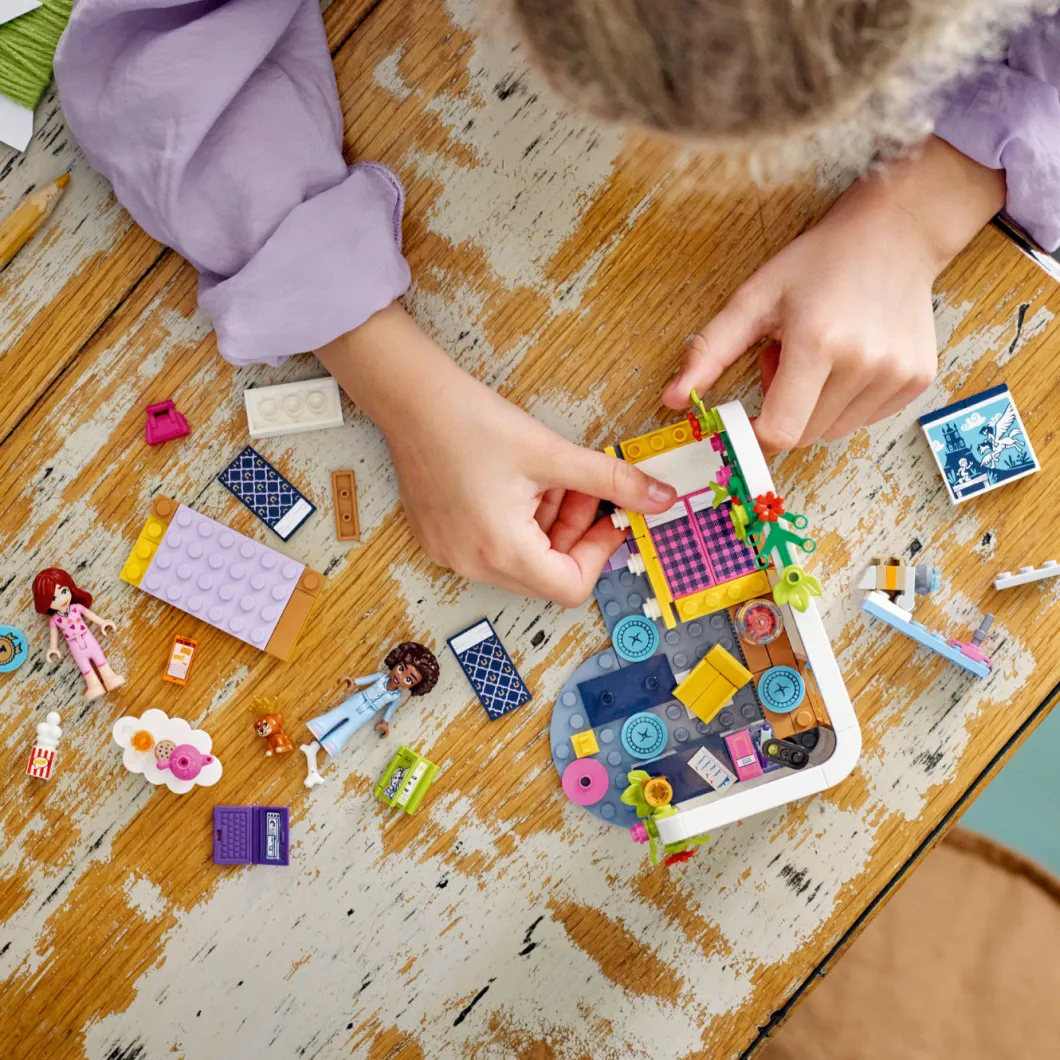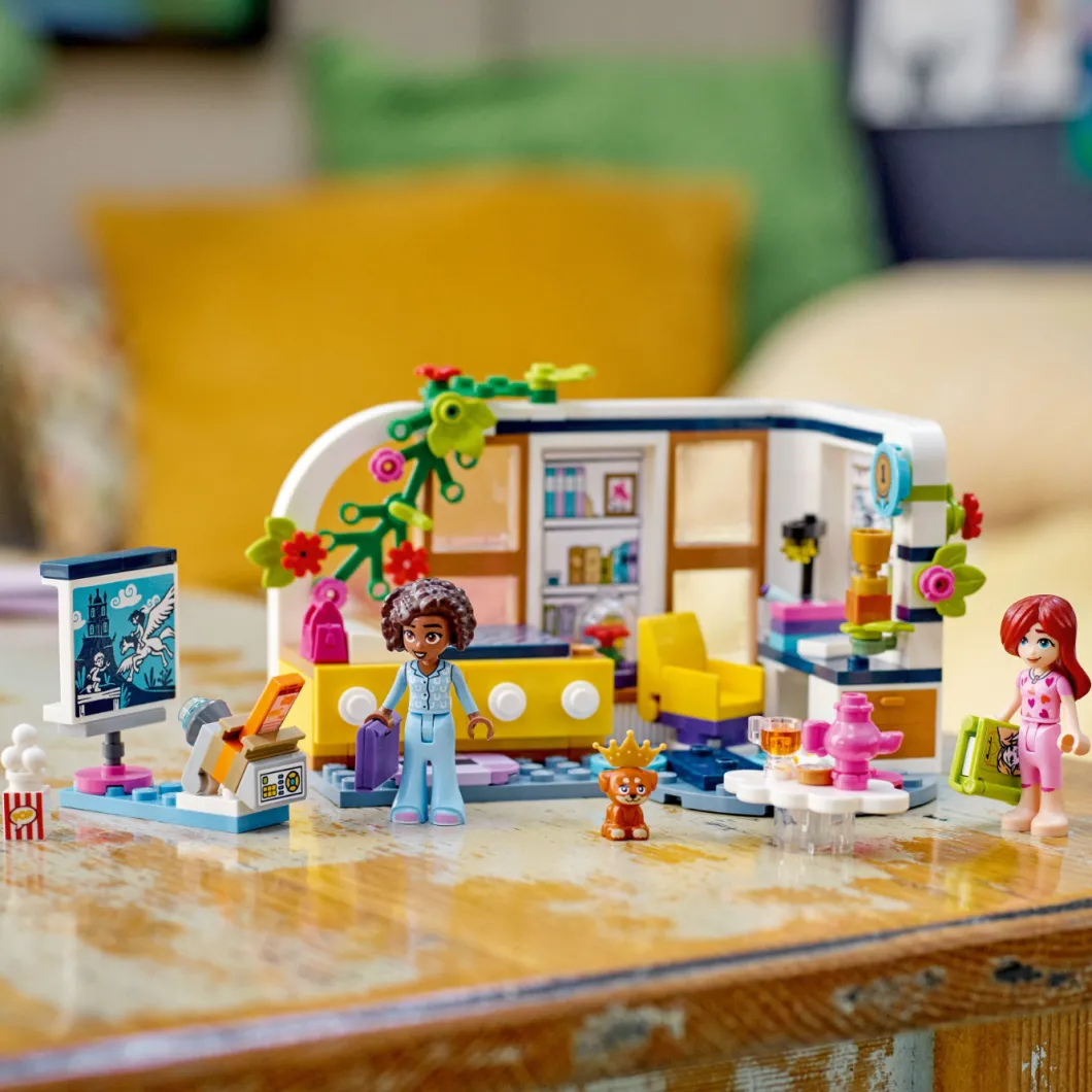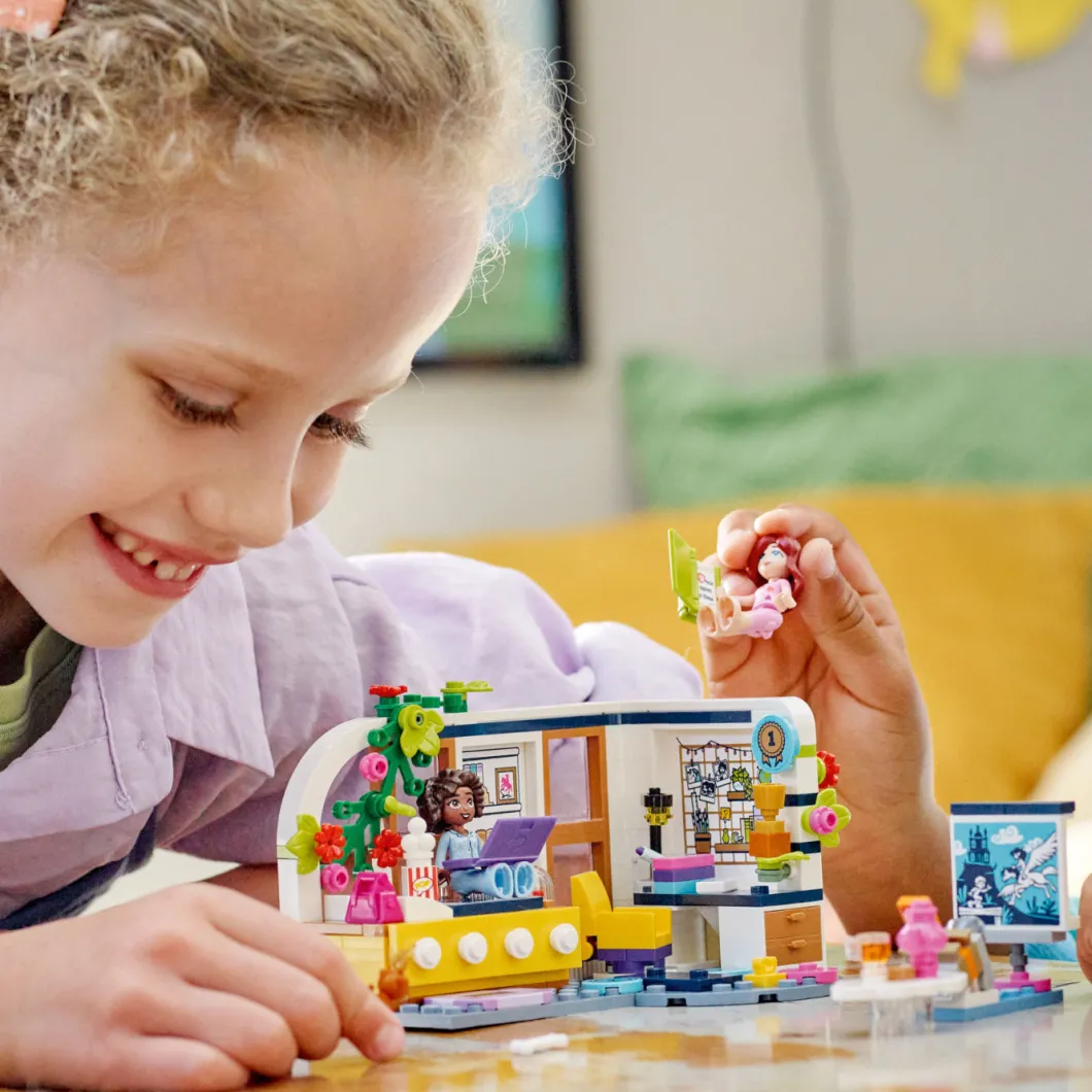 Los niños de 6 años o más crearán divertidas historias con el set de construcción LEGO® Friends Habitación de Aliya (41740). Explorarán todo lo que contiene mientras Paisley y Aliya escriben relatos en esta noche de chicas. La habitación refleja que Aliya es una joven muy aplicada: hay trabajos escolares, una silla giratoria, un portátil, un libro, una lámpara y un trofeo. A los peques les encantarán también otros simpáticos detalles, ¡como el examen suspendido que Aliya ha escondido debajo de todos sus sobresalientes! Quizá Paisley pueda ayudarla a no ser tan dura consigo misma. Cuando quieran relajarse, tienen una gran pantalla para ver películas y accesorios que representan juguetes caninos para jugar con la cachorrita de Aliya. Instrucciones para jóvenes constructores Construir se convertirá en una sencilla e intuitiva aventura para los niños con la app LEGO Builder, que les permite acercar y girar modelos en 3D, guardar sets y controlar su avance en el proceso de construcción.