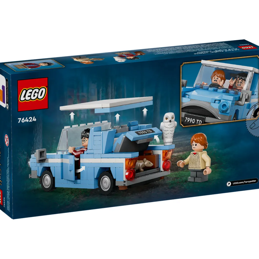 Recrea el emocionante viaje a Hogwarts™ de Harry Potter™ y Ron Weasley en el Ford Anglia™ Volador (76424) con este juego de fantasía para peques a partir de 7 años. El coche de juguete LEGO® para construir tiene puertas que se abren y techo desmontable, así que resulta fácil colocar dentro las minifiguras de Harry Potter y Ron Weasley™ y la figura de la lechuza Hedwig™. Además, cuenta con espacio en el maletero para la maleta, las varitas de Harry y Ron, y la rata mascota de Ron, Scabbers™. Este juguete de construcción infantil de alta calidad es el mejor regalo de cumpleaños o sorpresa para niños y niñas, que no solo podrán interpretar la icónica escena de Harry Potter y la cámara secreta™, sino también inventar sus propias historias mágicas. El vehículo de este juego de aventuras puede combinarse con otros sets de construcción LEGO Harry Potter (a la venta por separado) para estimular la imaginación de los jóvenes magos, brujas y Muggles™, y ofrecerles aún más posibilidades de juego.