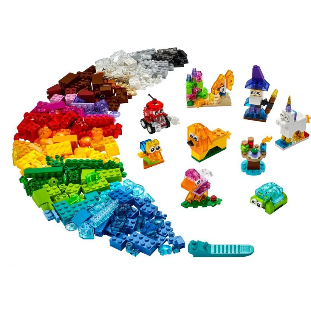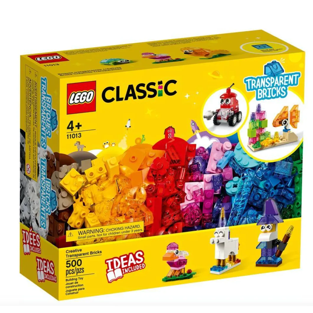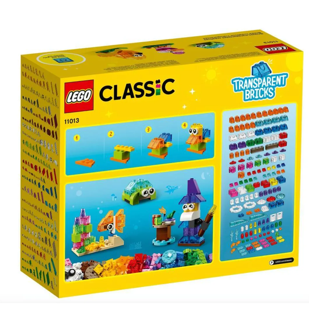El set de construcción LEGO® Classic Ladrillos Creativos Transparentes (11013) contiene una deslumbrante gama de piezas LEGO transparentes de toda clase de colores, formas y tamaños, así como una fantástica selección de piezas, ojos, ruedas y ladrillos LEGO clásicos: todo lo que un niño necesita para entregarse al juego creativo durante horas sin fin.
