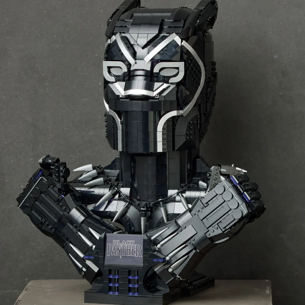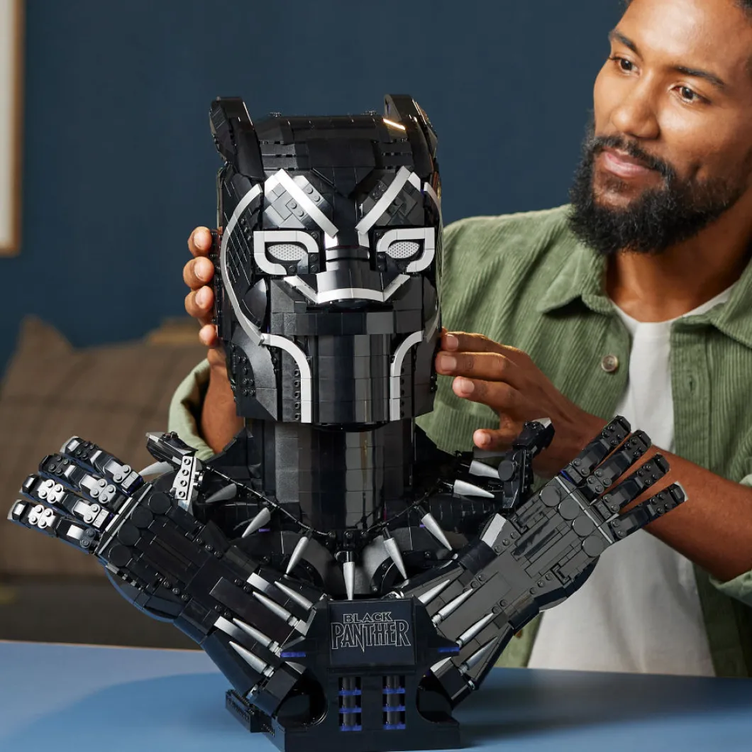 Esta recreación detallada presenta la cabeza, el pecho y las manos casi de tamaño natural de Black Panther, posados en el icónico saludo de Wakanda Forever. Ambas manos cuentan con dedos articulados y se separan del modelo principal para aumentar las posibilidades de visualización. Una base de pantalla resistente con una placa con el logotipo adjunta completa este recordatorio duradero de una leyenda épica. Con 2.961 piezas, este modelo desafiante y gratificante seguramente brindará un gran placer y satisfacción mucho después de que se haya completado la construcción.