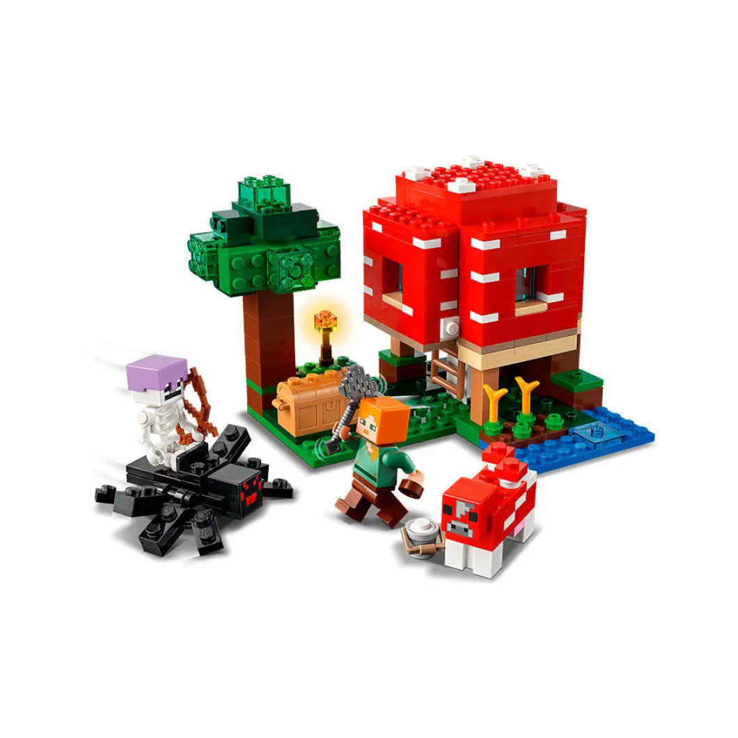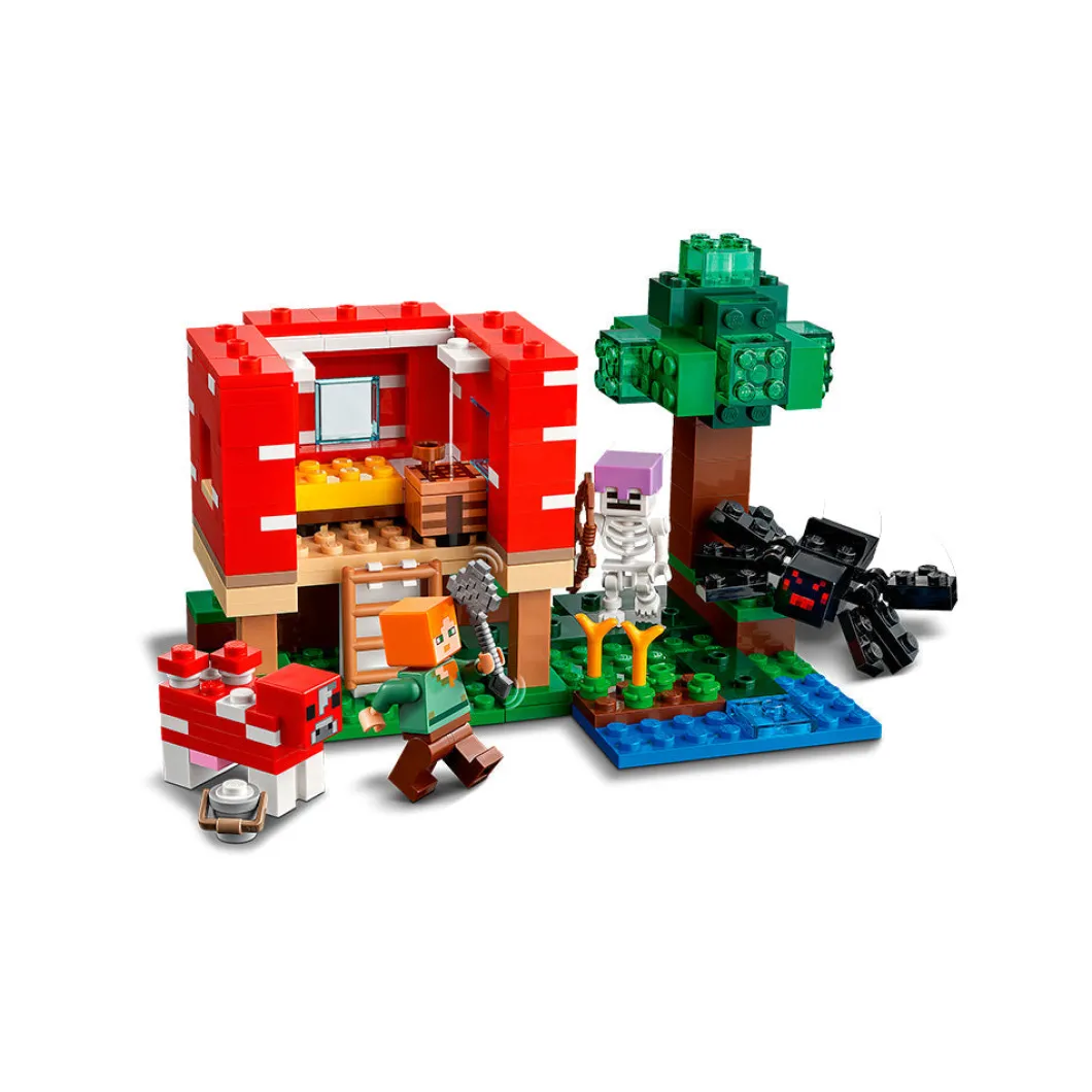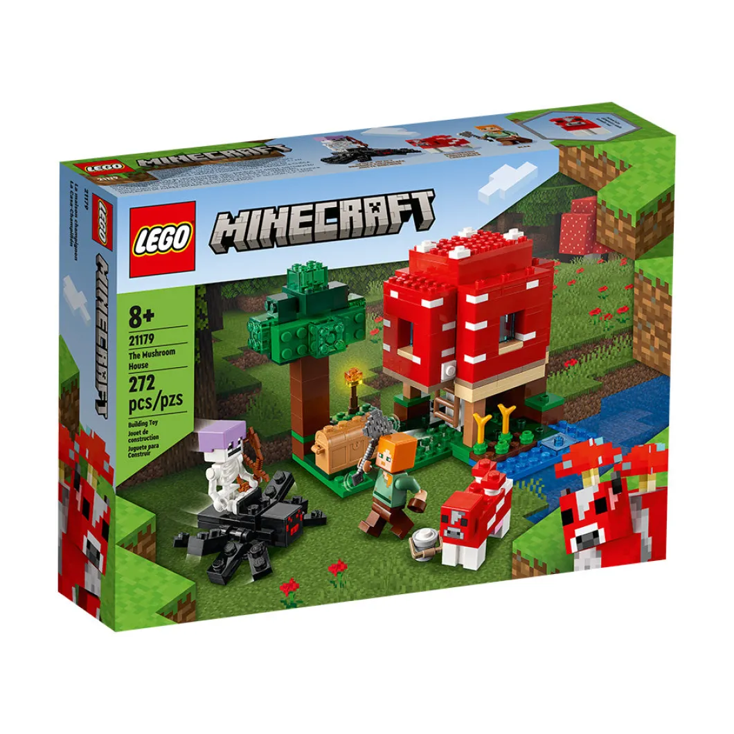 Lleva a tu jugador de Minecraft® a otra dimensión con el set LEGO® Minecraft La Casa-Champiñón (21179), un fantástico regalo para niños a partir de 8 años.Diversión al estilo Minecraft en la Casa-ChampiñónLos jugadores de Minecraft podrán poner en marcha su creatividad en el mundo real construyendo una casa dentro de un champiñón gigante. Las paredes y el techo desmontables facilitan el acceso a la mesa de trabajo y el mobiliario. En el exterior, Alex, la heroína de Minecraft, usa un cuenco para recoger sopa de la vaca champiñaca. Pero los planes cambian en cuanto un jinete arácnido esqueleto arrasa la escena. El juego imaginativo estará abierto a un sinfín de posibilidades cuando los peques entren en la Casa-Champiñón Minecraft.