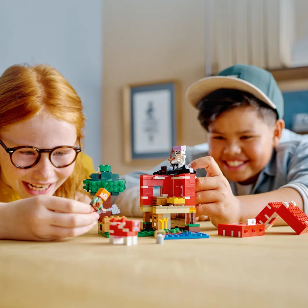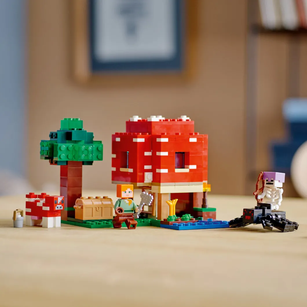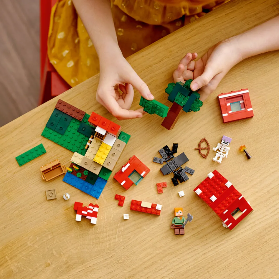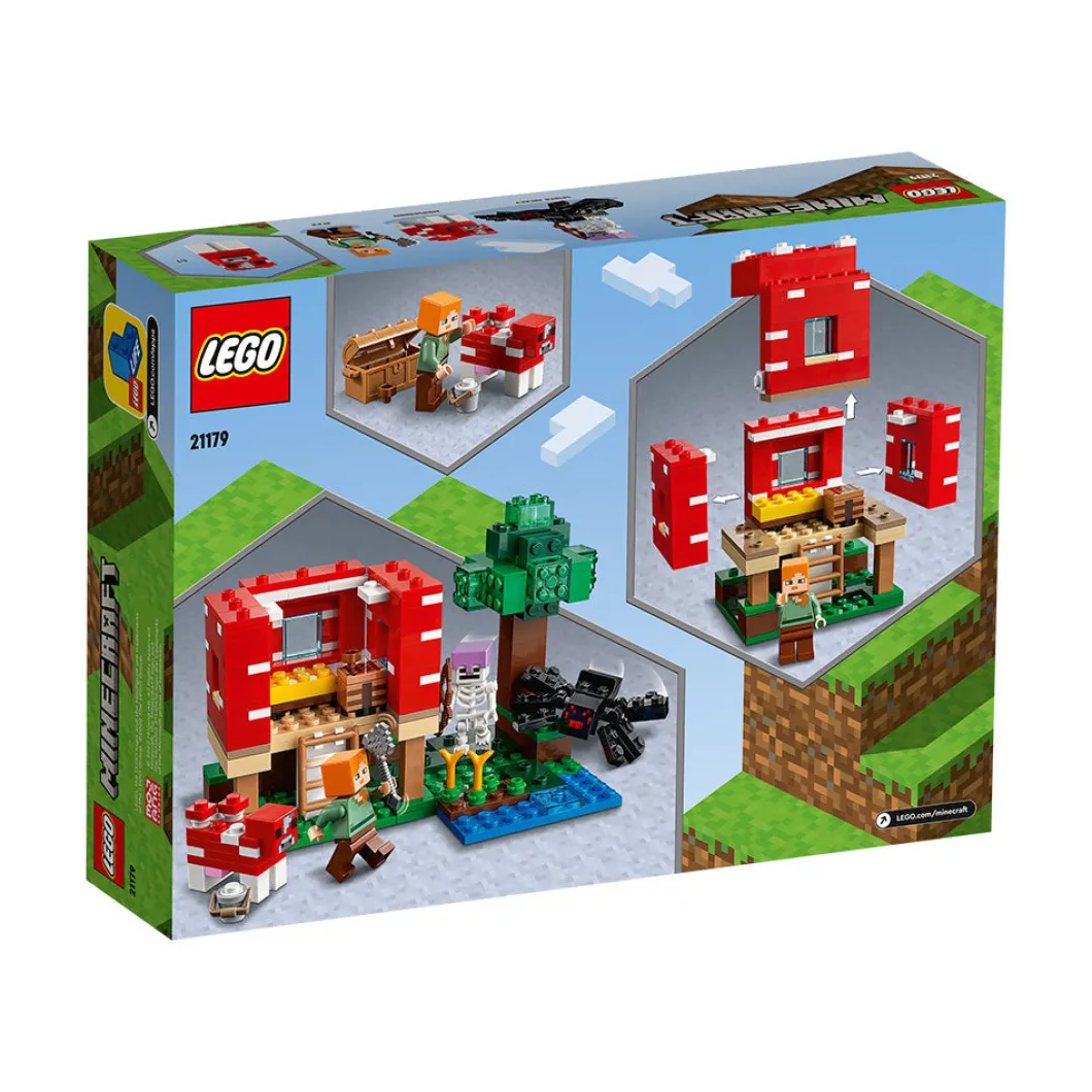 Lleva a tu jugador de Minecraft® a otra dimensión con el set LEGO® Minecraft La Casa-Champiñón (21179), un fantástico regalo para niños a partir de 8 años.Diversión al estilo Minecraft en la Casa-ChampiñónLos jugadores de Minecraft podrán poner en marcha su creatividad en el mundo real construyendo una casa dentro de un champiñón gigante. Las paredes y el techo desmontables facilitan el acceso a la mesa de trabajo y el mobiliario. En el exterior, Alex, la heroína de Minecraft, usa un cuenco para recoger sopa de la vaca champiñaca. Pero los planes cambian en cuanto un jinete arácnido esqueleto arrasa la escena. El juego imaginativo estará abierto a un sinfín de posibilidades cuando los peques entren en la Casa-Champiñón Minecraft.
