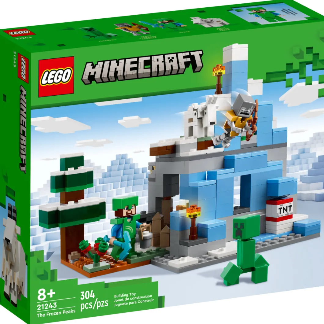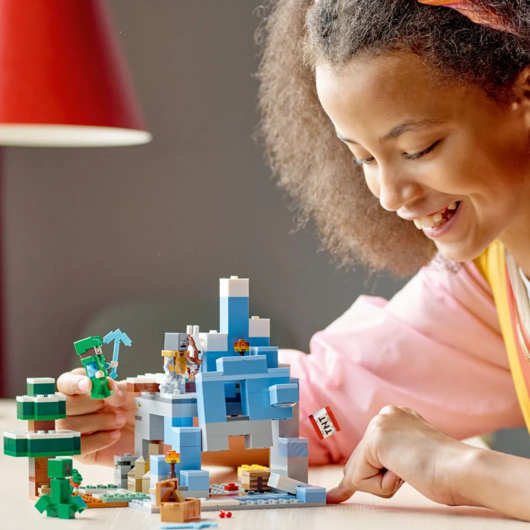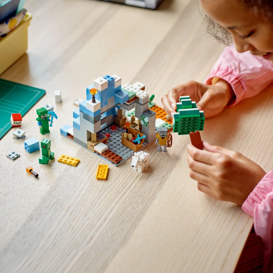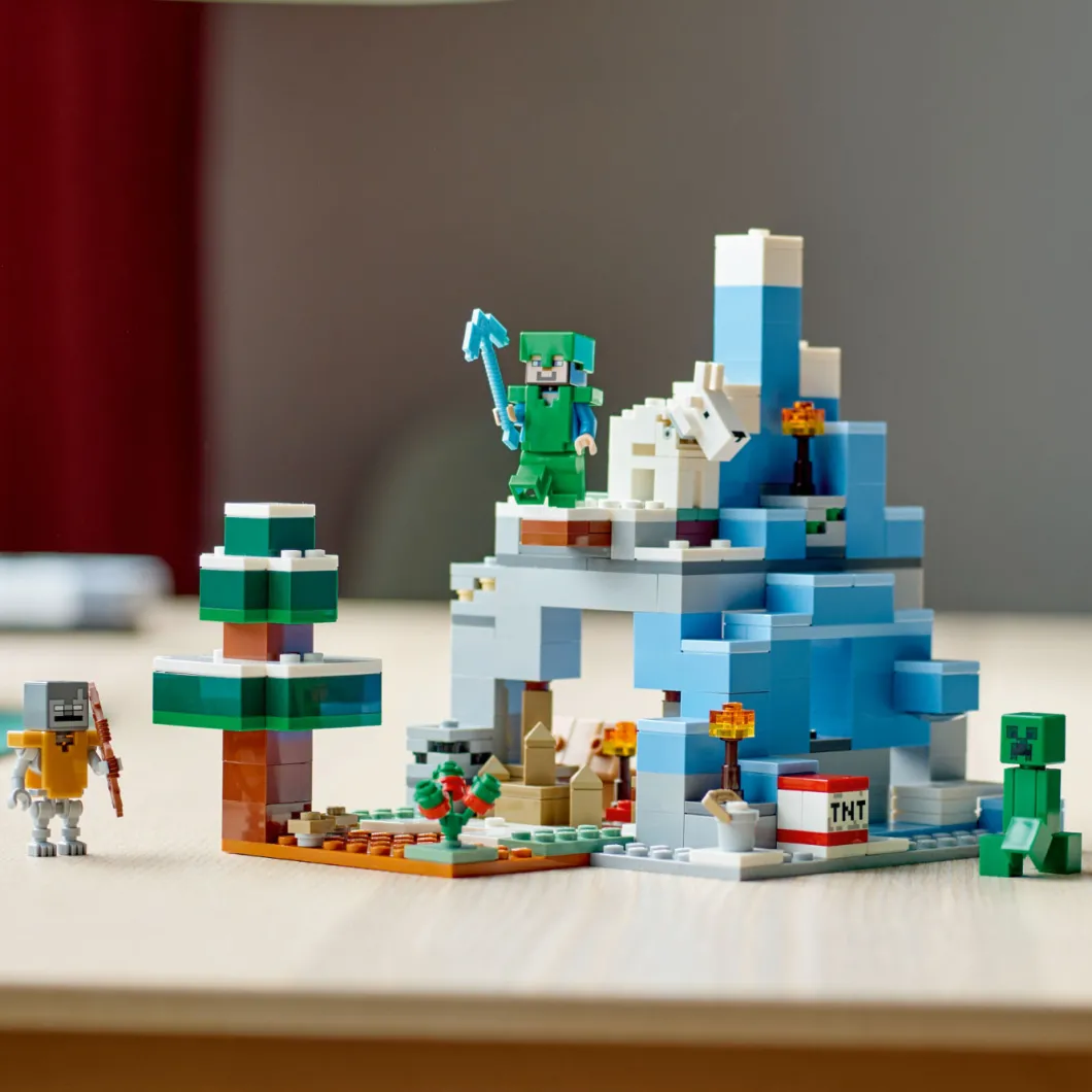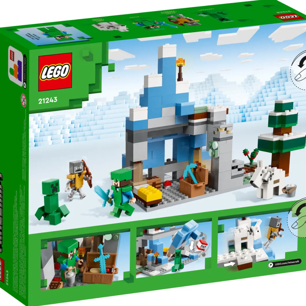 LEGO® Minecraft® The Frozen Peaks (21243) está repleto de características y funciones prácticas para ofrecer a los jugadores a partir de 8 años montañas de diversión Minecraft repleta de acción.