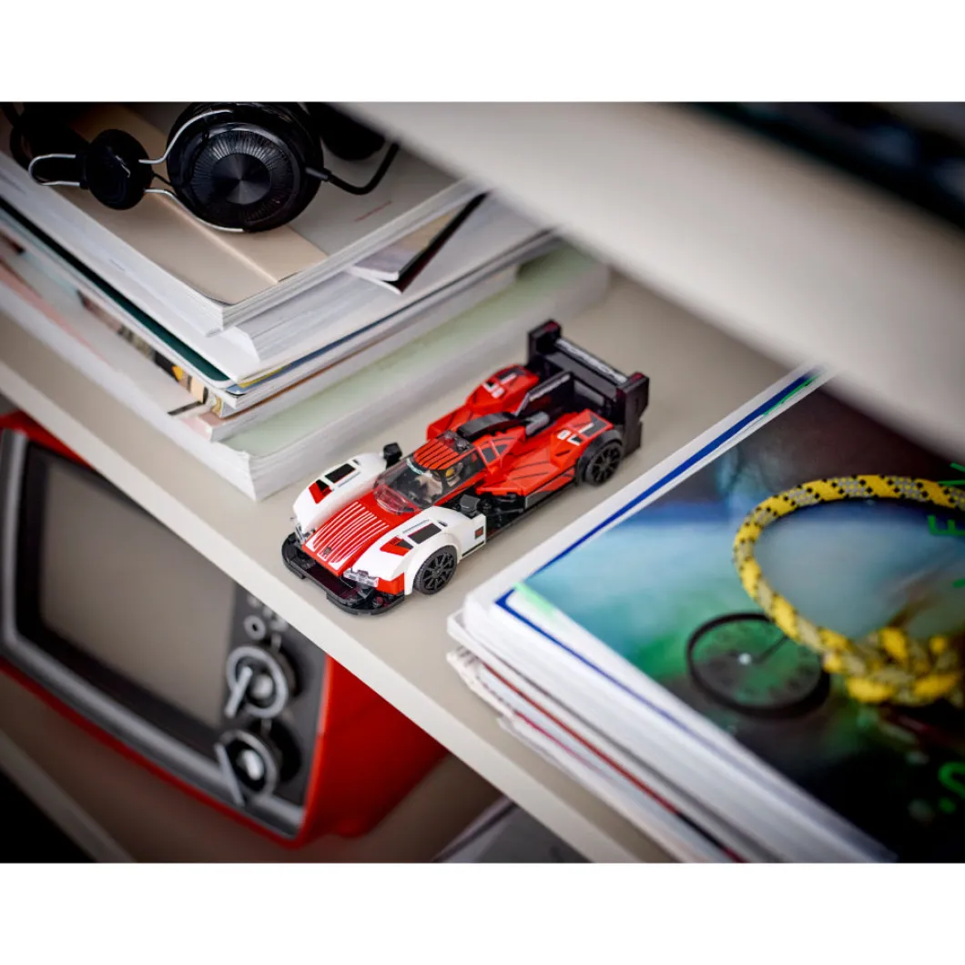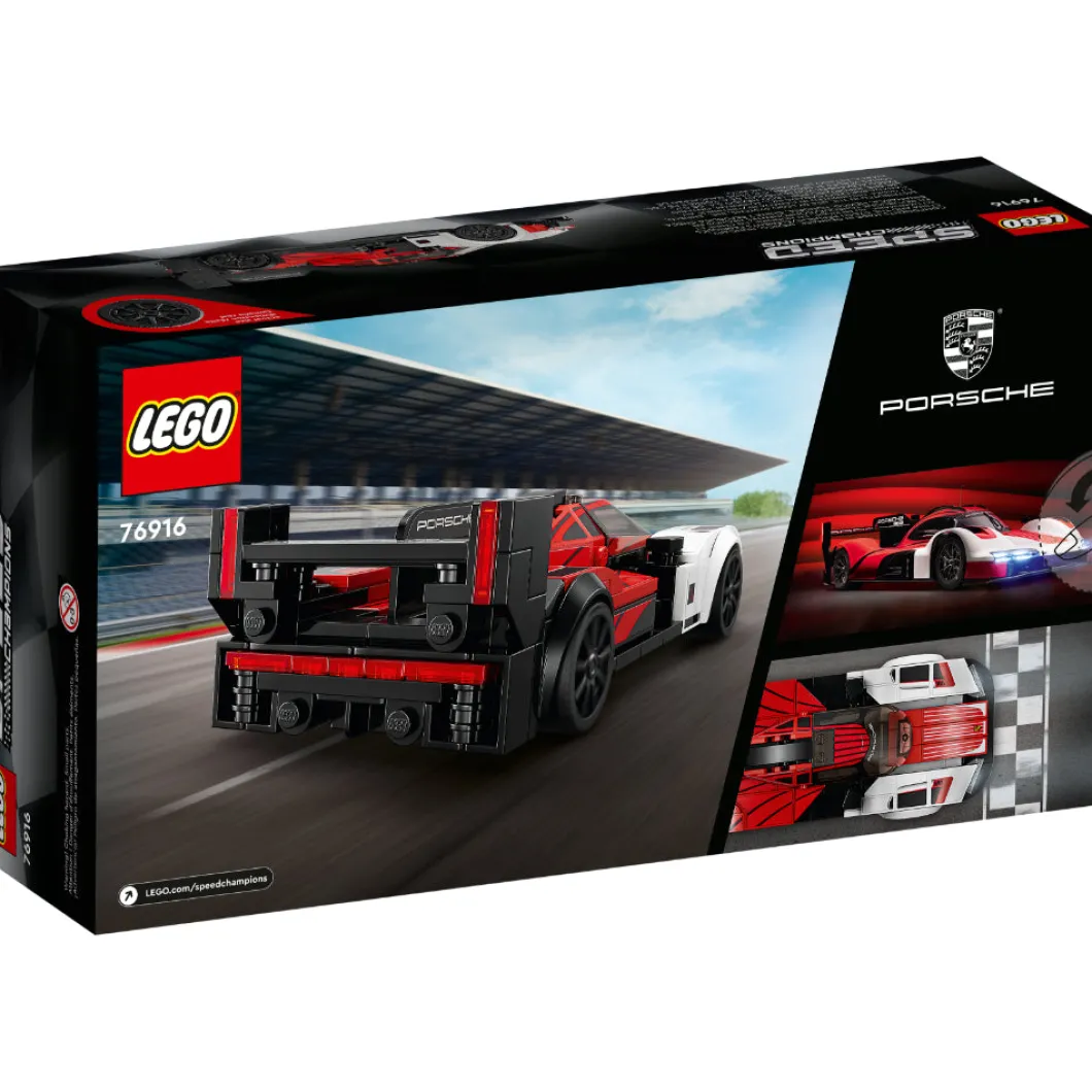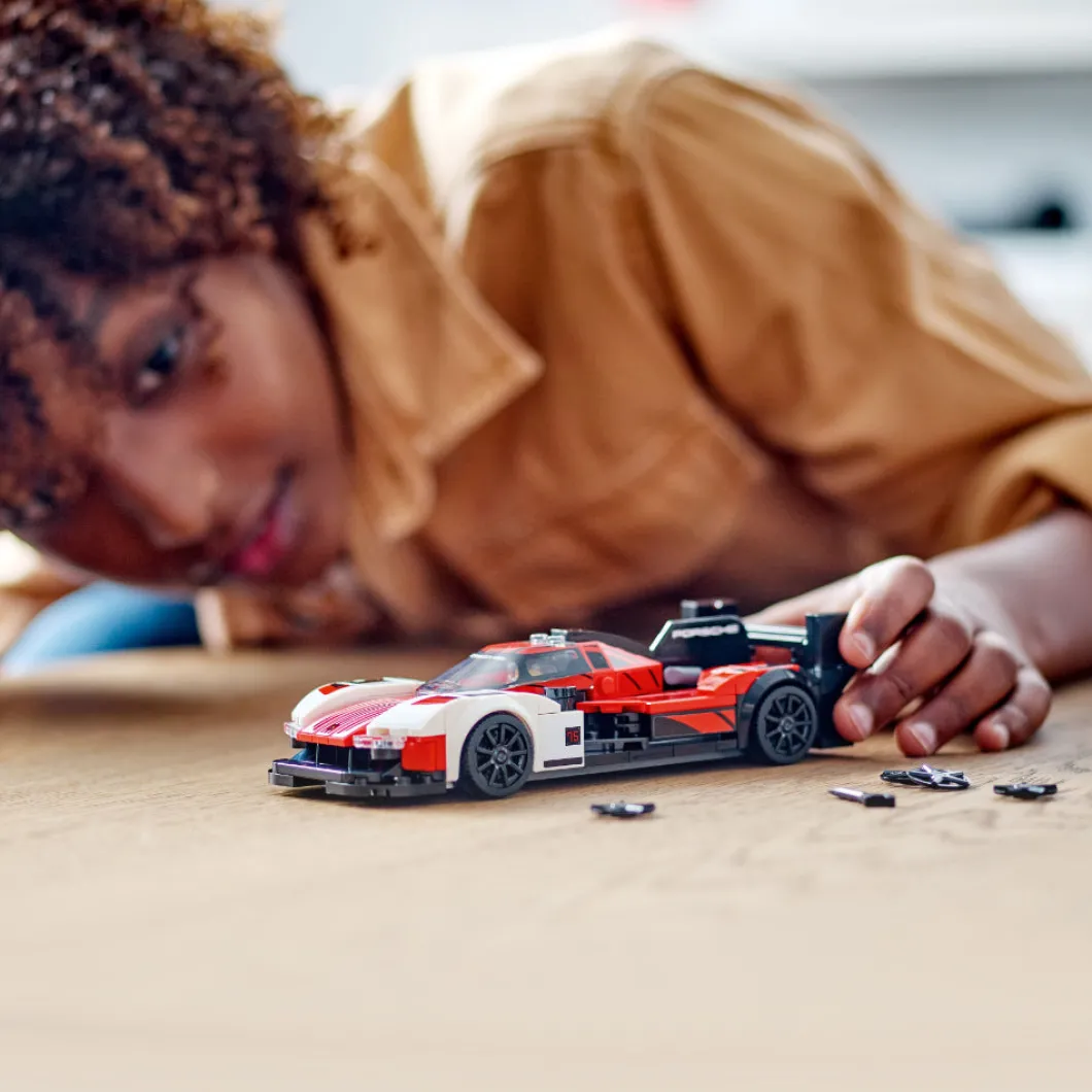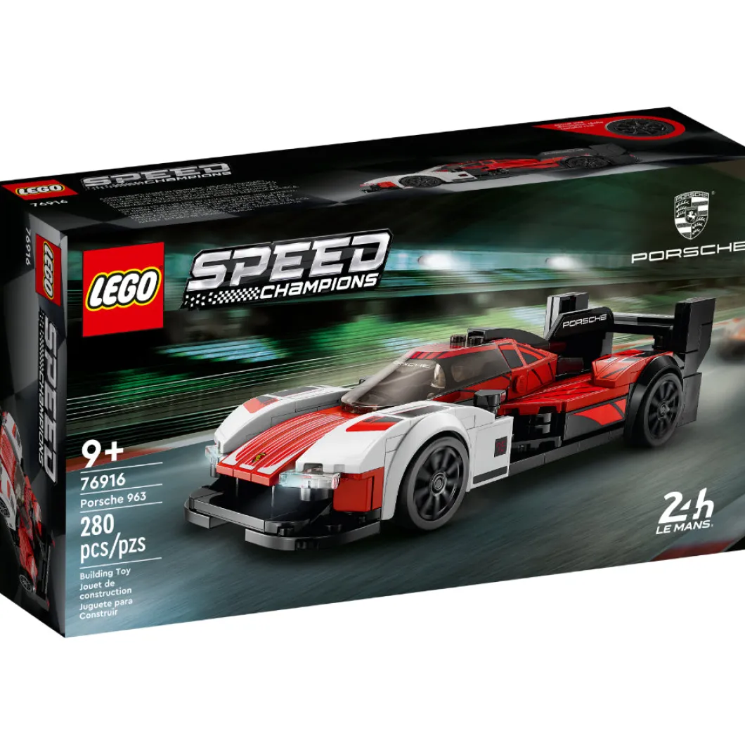El set de construcción LEGO® Speed Champions Porsche 963 (76916) recrea con fidelidad el sensacional diseño del modelo original. A los niños y niñas de 9 años o más y los coleccionistas de réplicas de coches de todas las edades les entusiasmará construir, exponer e interpretar emocionantes carreras con este fabuloso juguete. Construye tu propio Porsche Esta miniversión del Porsche 963 Le Mans Daytona Hybrid incluye detalles realistas del coche de verdad: los colores distintivos rojo, negro y blanco (una combinación inspirada en los coches de carreras Porsche de la década de 1980), los prominentes guardabarros, el capó bajo, el habitáculo, el alerón trasero y la aleta posterior. ¡El set trae también una minifigura de un piloto para competir en circuitos! Divertida experiencia digital para fans de LEGO Déjate guiar por la app LEGO Builder y vive con tu peque una aventura de construcción sencilla e intuitiva. Acerca y gira modelos en 3D, guarda sets y controla tu avance en el proceso.