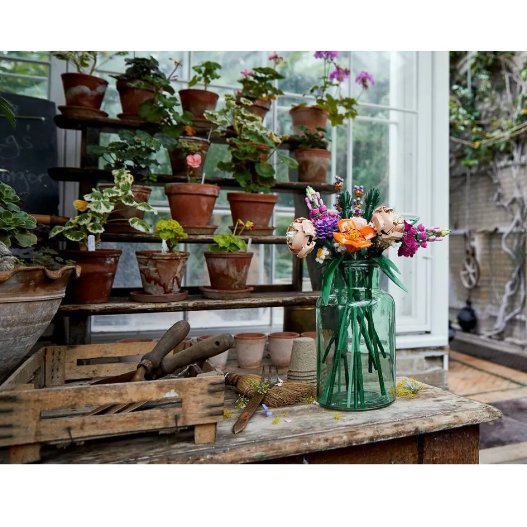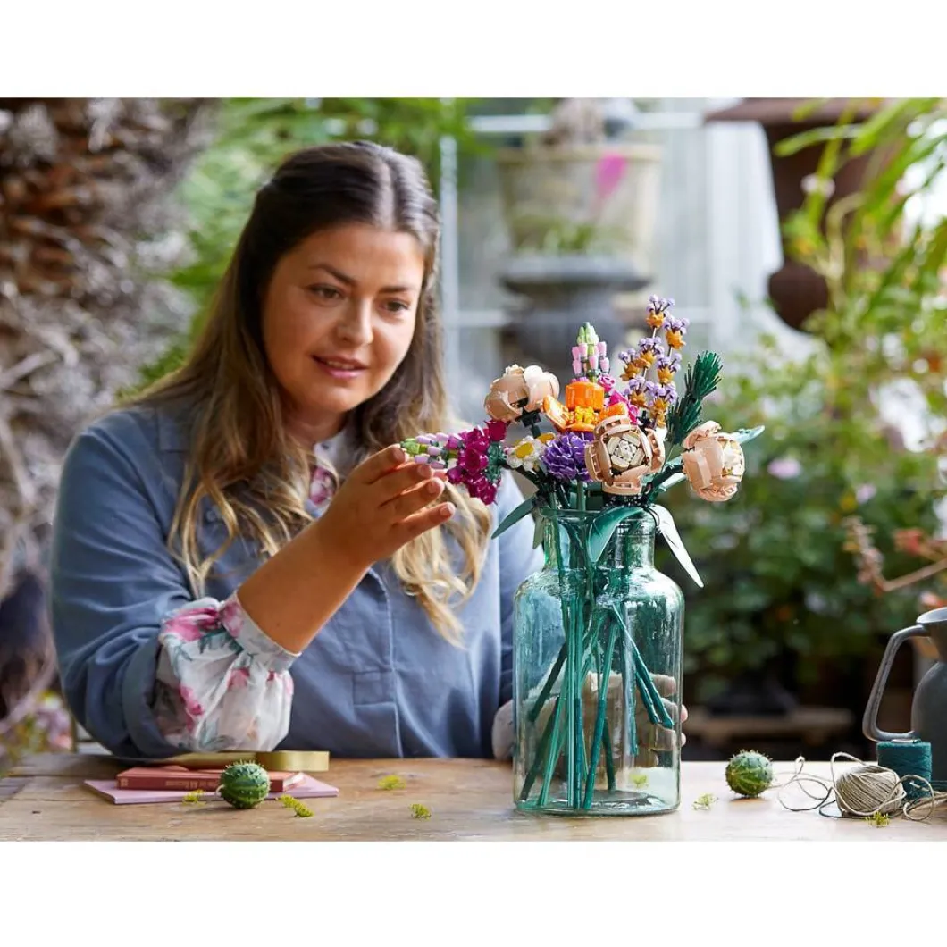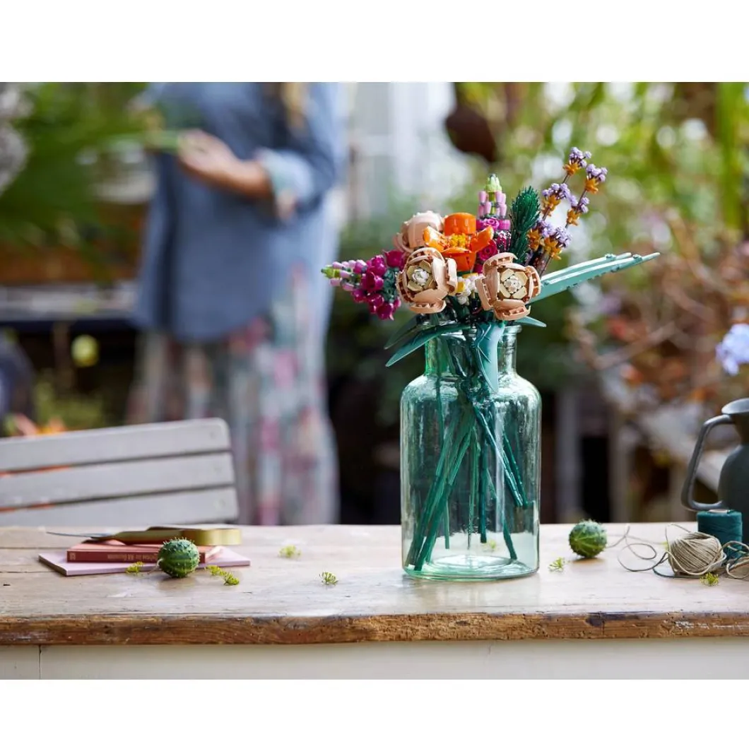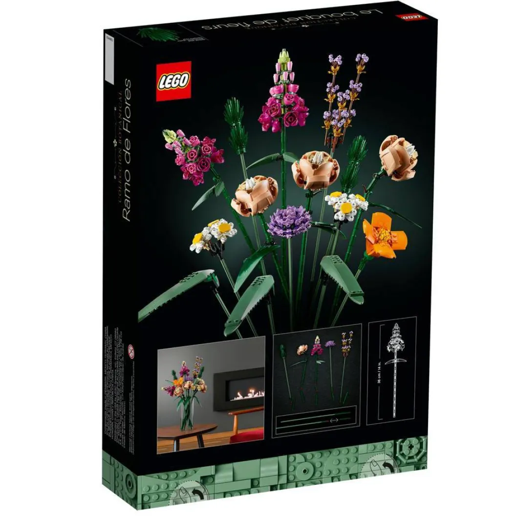 Cada detalle del ramo se realiza con componentes LEGO, todos personalizables para crear una pieza original y digna de ver. La mayoría de las flores tienen pétalos que pueden colocarse en distintas posiciones: así te divertirás diseñando diferentes arreglos. Desmonta los tallos y recombínalos para ajustar la altura y la forma de tus flores. Este set, que forma parte de la colección LEGO Botanical para adultos, incluye diversos elementos fabricados a partir de plástico de origen vegetal producido con caña de azúcar procedente de fuentes sostenibles.