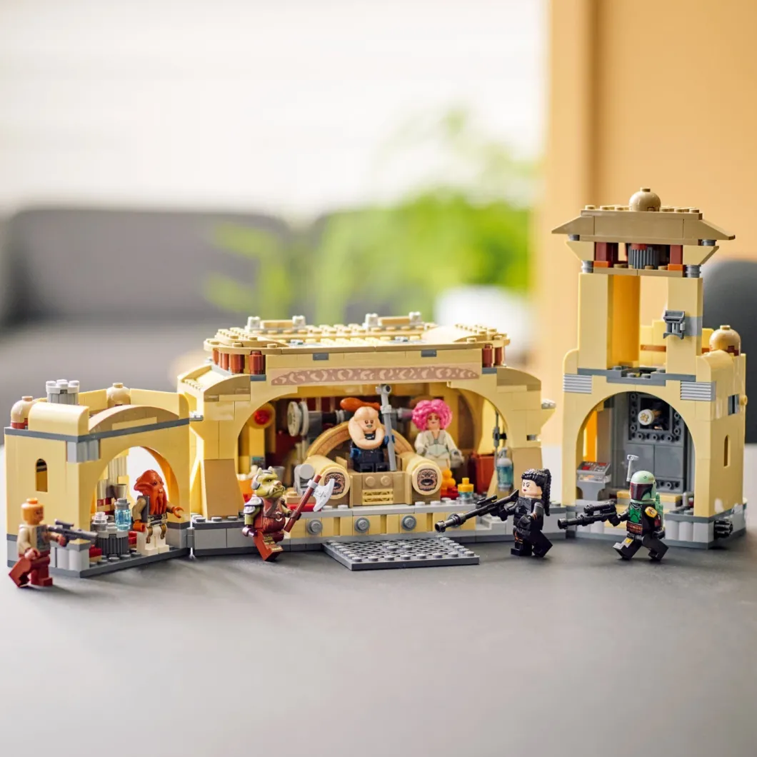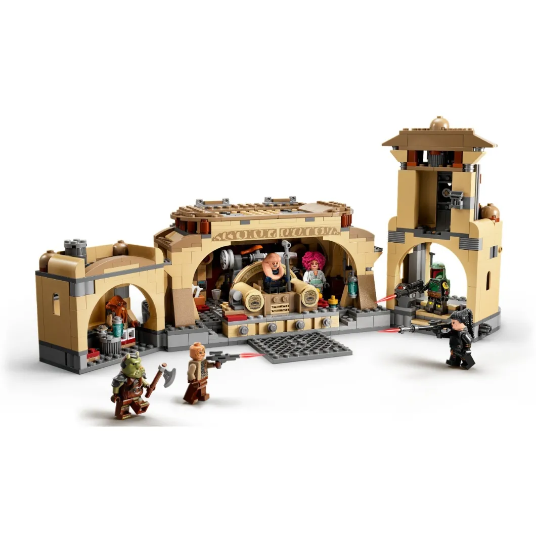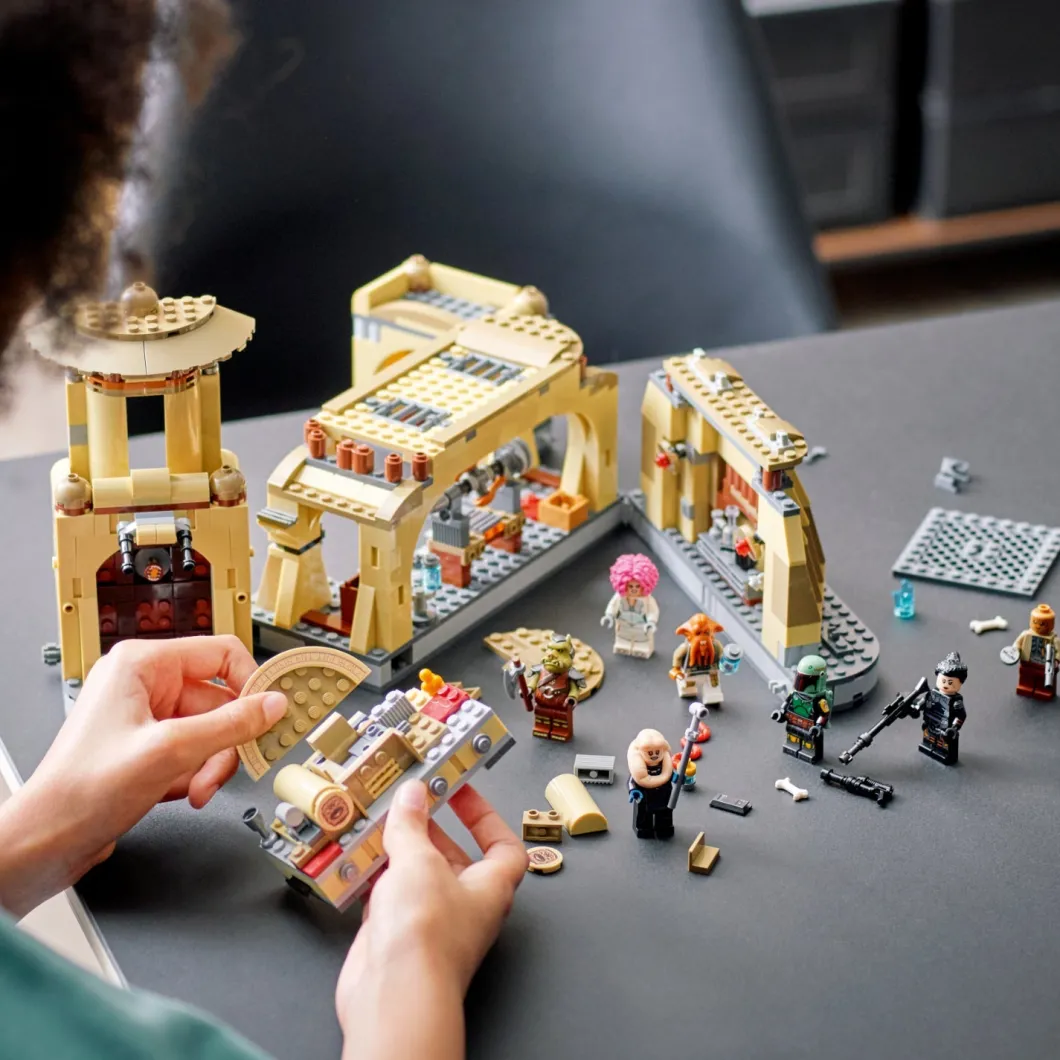 Un regalo espléndido para niños que quieran causar sensación, el set incluye también 7 personajes LEGO® Star Wars™, entre ellos minifiguras LEGO de Bib Fortuna, una bailarina Theelin, un guardia Weequay, un guardia Gamorreano y un Quarren (novedad en marzo de 2022), así como un surtido de armas. Encontrarás las instrucciones de construcción paso a paso en la caja y en la app gratuita Instrucciones de Montaje LEGO.