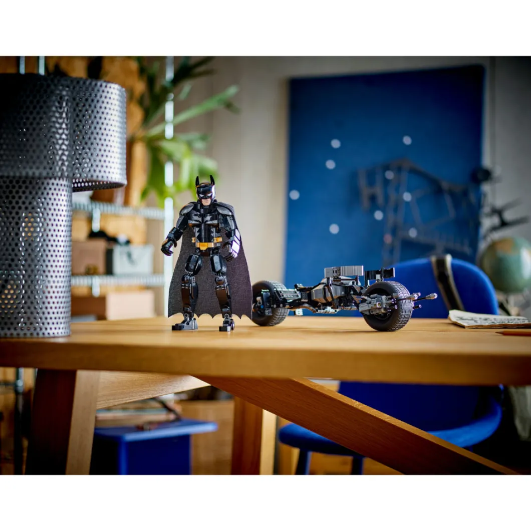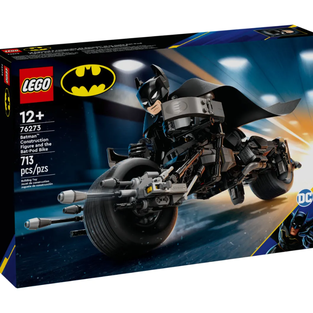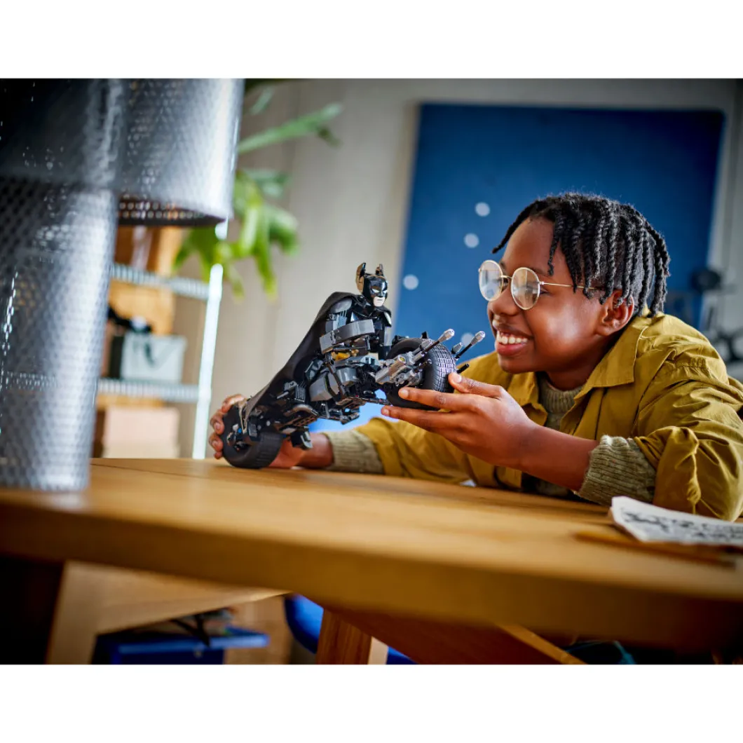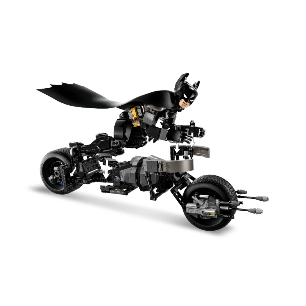 El set LEGO® DC Batman™ Figura para Construir: Batman y Moto Bat-Pod (76273), basado en la película El caballero oscuro, reúne los componentes ideales para cualquier fan del emblemático superhéroe a partir de 12 años. Totalmente articulado y con una altura aproximada de 26 cm, este juguete con detalles de gran fidelidad es tan fantástico como deseable para tu colección. Las articulaciones móviles del juguete en hombros, brazos, caderas y piernas permiten a los peques colocarlo en posturas geniales y crear aventuras dinámicas, ¡por eso esta figura del superhéroe es perfecta para construir, jugar y exponer! La detallada figura de acción de Batman viene con su moto Bat-Pod ultramoderna, equipada con 2 lanzadores. Para disfrutar también de la diversión digital, los constructores y las constructoras pueden acercarse y girar versiones 3D de sus sets y seguir sus progresos en la intuitiva app LEGO Builder.