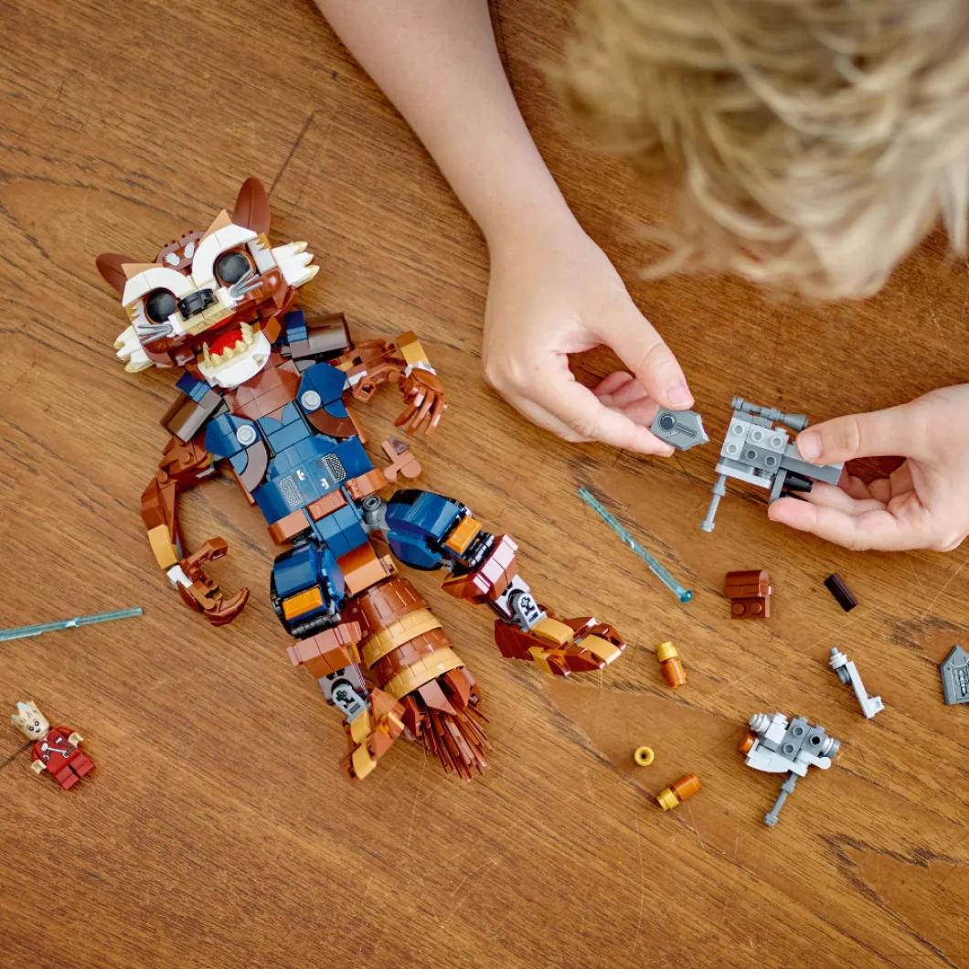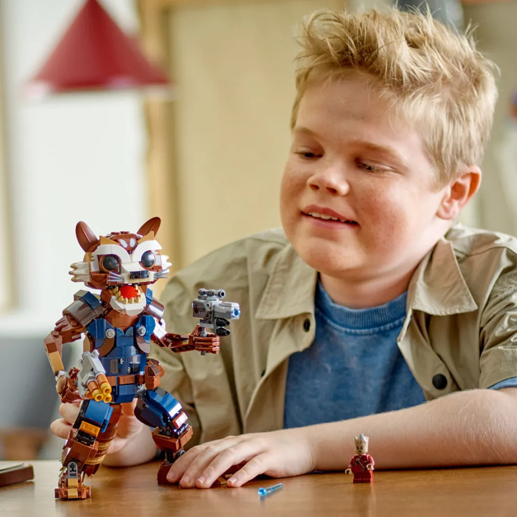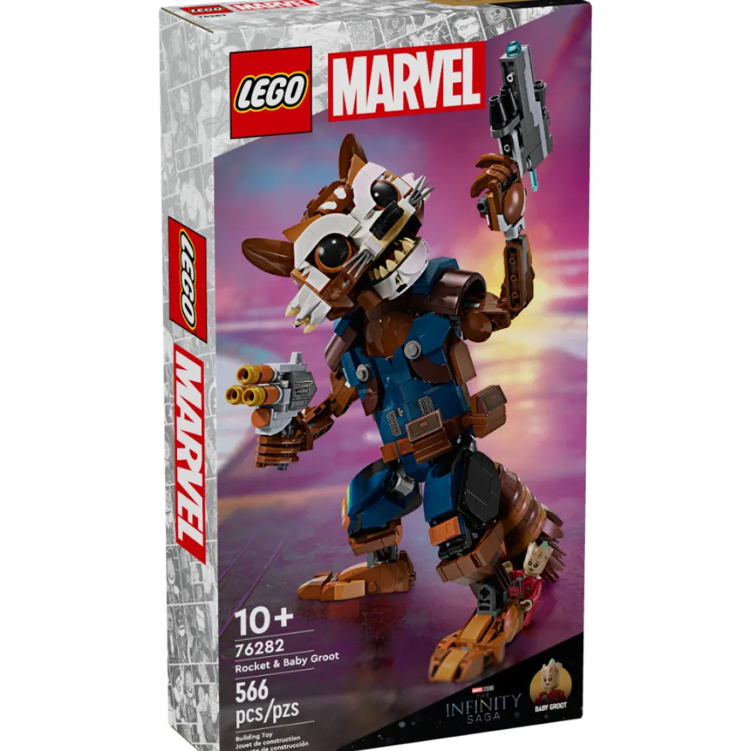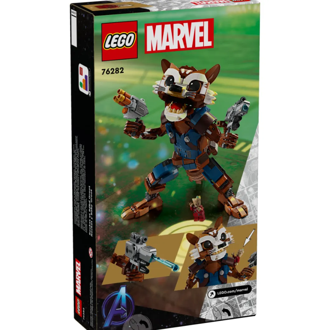 Lanza la acción de las películas de Marvel hacia una nueva dimensión con el set de construcción LEGO® Marvel Rocket y Bebé Groot (76282). Este juguete para niños y niñas de 10 años o más tiene articulaciones móviles, fieles detalles y aproximadamente 22 cm de altura. Más que un juguete de construcción infantil, esta figura de acción de Rocket es una recreación realista de un icónico personaje de Guardianes de la Galaxia, de Marvel Studios. El modelo refleja la actitud rebelde del héroe y su afición por las armas. Todas las articulaciones (salvo los codos) son móviles para jugar con él y exponerlo de montones de formas distintas. El personaje empuña un cañón automático y un bláster, ¡y lleva sentado en el hombro a su simpático compañero Bebé Groot! Si estás buscando juguetes de tendencia construibles para regalar, el set LEGO Marvel Rocket y Bebé Groot es perfecto para jóvenes superhéroes y superheroínas. Además, se lo pasarán genial construyendo con la ayuda de la app LEGO Builder.