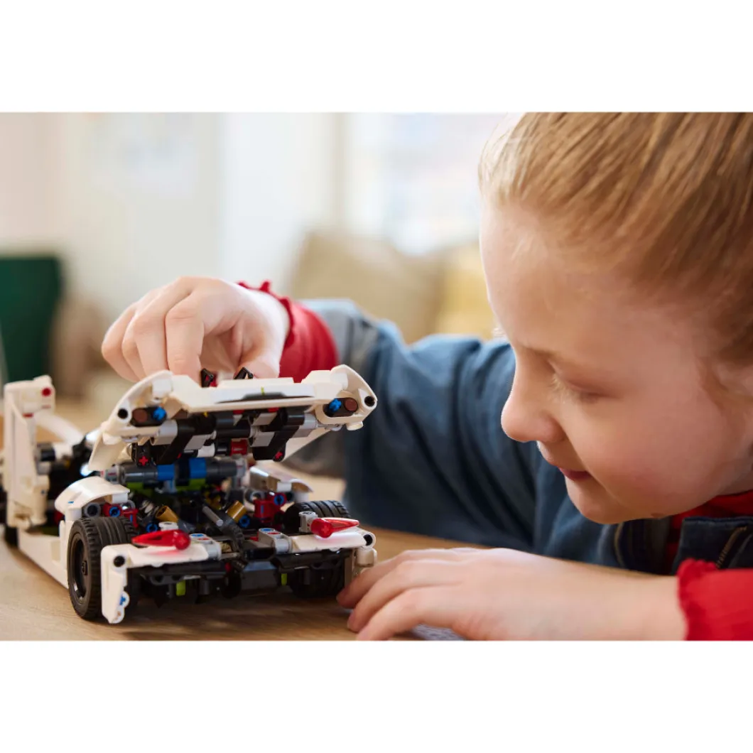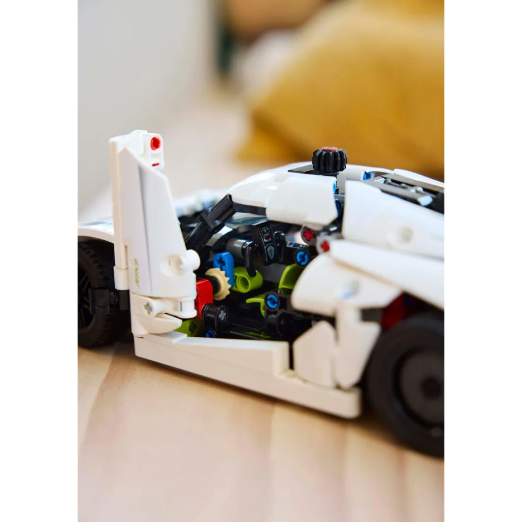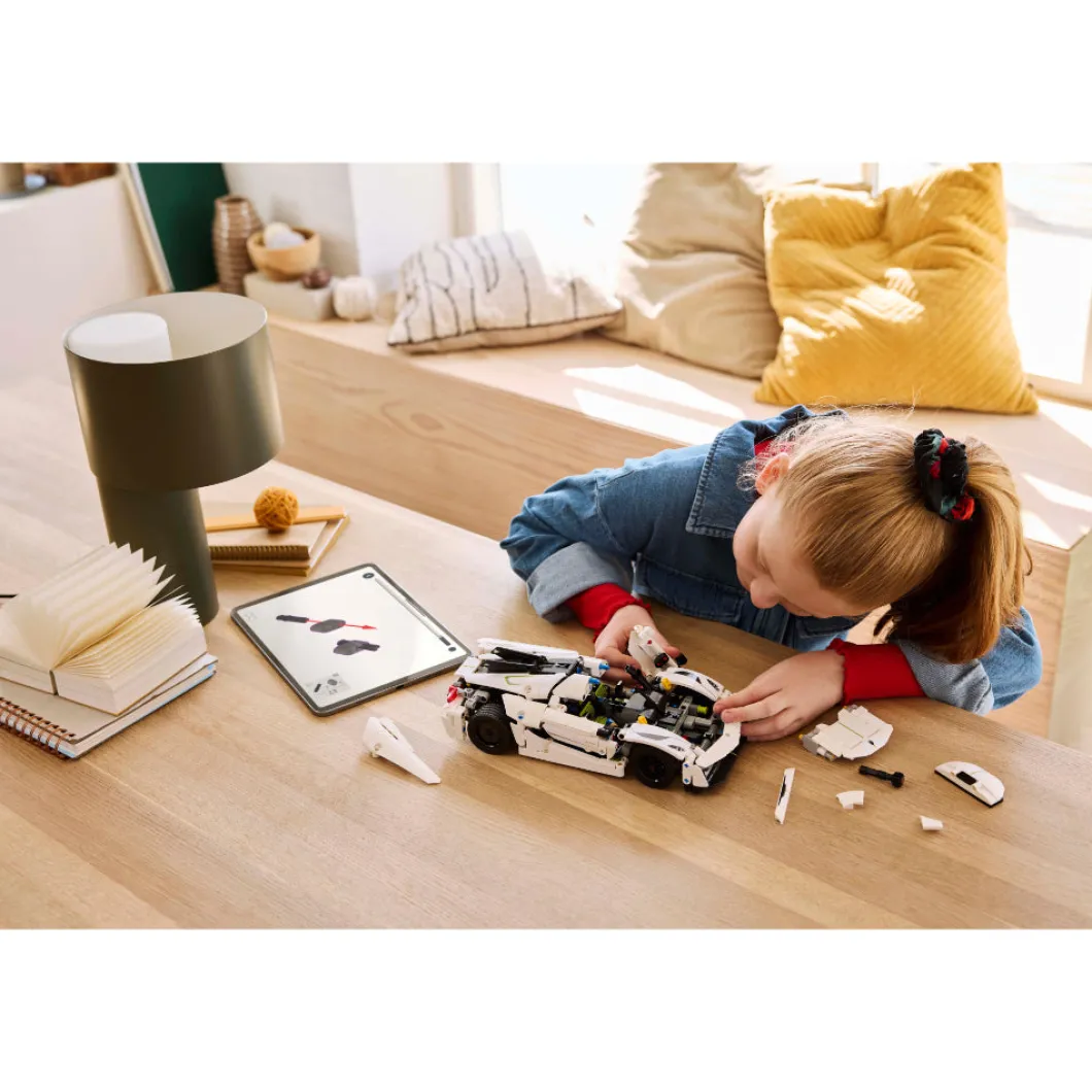 Regala a tu peque de 10 años o más la posibilidad de construir el emocionante juguete LEGO® Technic Hipercoche Koenigsegg Jesko Absolut Blanco (42184). A los niños les espera el gratificante desafío de darle forma a sus detalles realistas. ¡Y construir es solo el principio! Esta maqueta, una interpretación de uno de los hipercoches con licencia para circular más rápidos del mundo, cuenta con infinidad de características que a los entusiastas del coche les encantará descubrir. Los jóvenes constructores podrán explorar conceptos de ingeniería construyendo el motor V8 y el diferencial para luego probar la dirección con la rueda desmontable situada en la parte frontal. Este hipercoche de juguete reproduce el sistema de hélice sincrónica diedro del coche de verdad, que abre las puertas hacia afuera y hacia arriba en un ángulo de 90°. Este coche de juguete interactivo es una fantástica idea de regalo para los más pequeños y viene con la intuitiva aplicación LEGO Builder, su guía en la aventura de construcción.