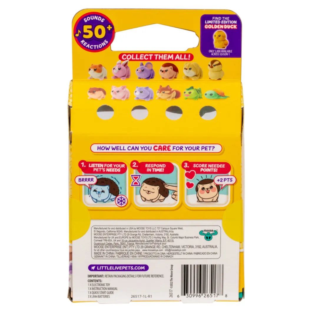 Saluda a Curlee Camaleon, uno de los adorables Little Live Pets NeeDees, los amigos interactivos que se pueden llevar puestos y que están listos para brindar diversión sin fin dondequiera que vaya tu hijo. Estas encantadoras criaturas se alimentan de cariño y atención, y señalan sus necesidades con sonidos únicos. Ya sea que estén juguetones, tengan frío, hambre o sueño, los NeeDees gritan «NeeDee NeeDee» para que tu hijo responda, convirtiendo cada interacción en un vínculo amoroso.