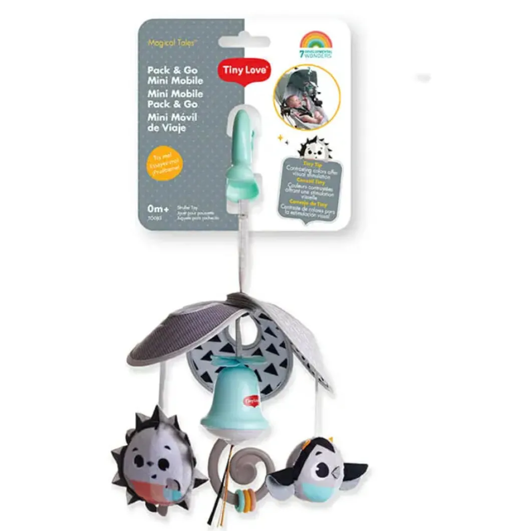 El Tiny Love Pack + Go Mini Mobile en Magical Tales es un adorable y plegable carillón de viento que suena dulce y está diseñado para mantener a tu pequeño entretenido y comprometido mientras viaja.