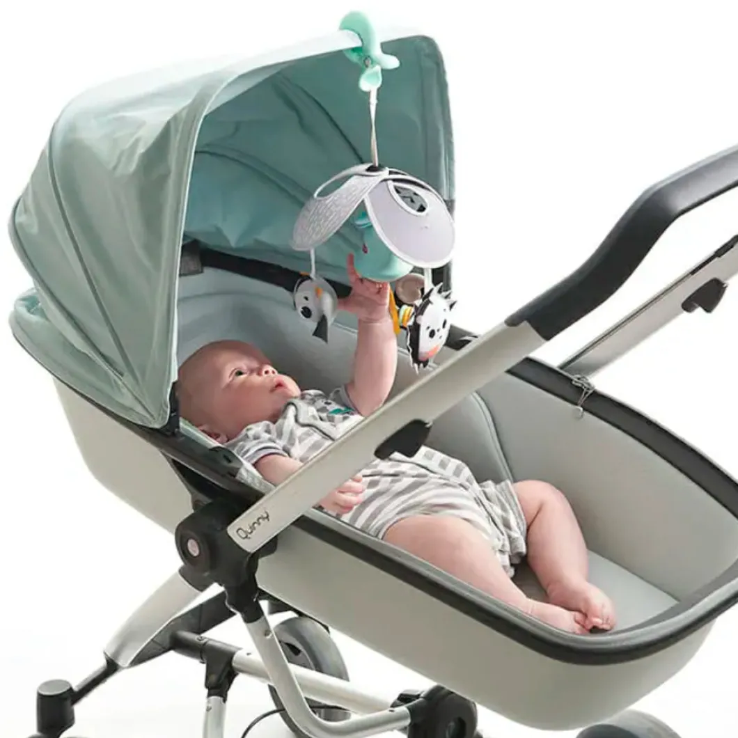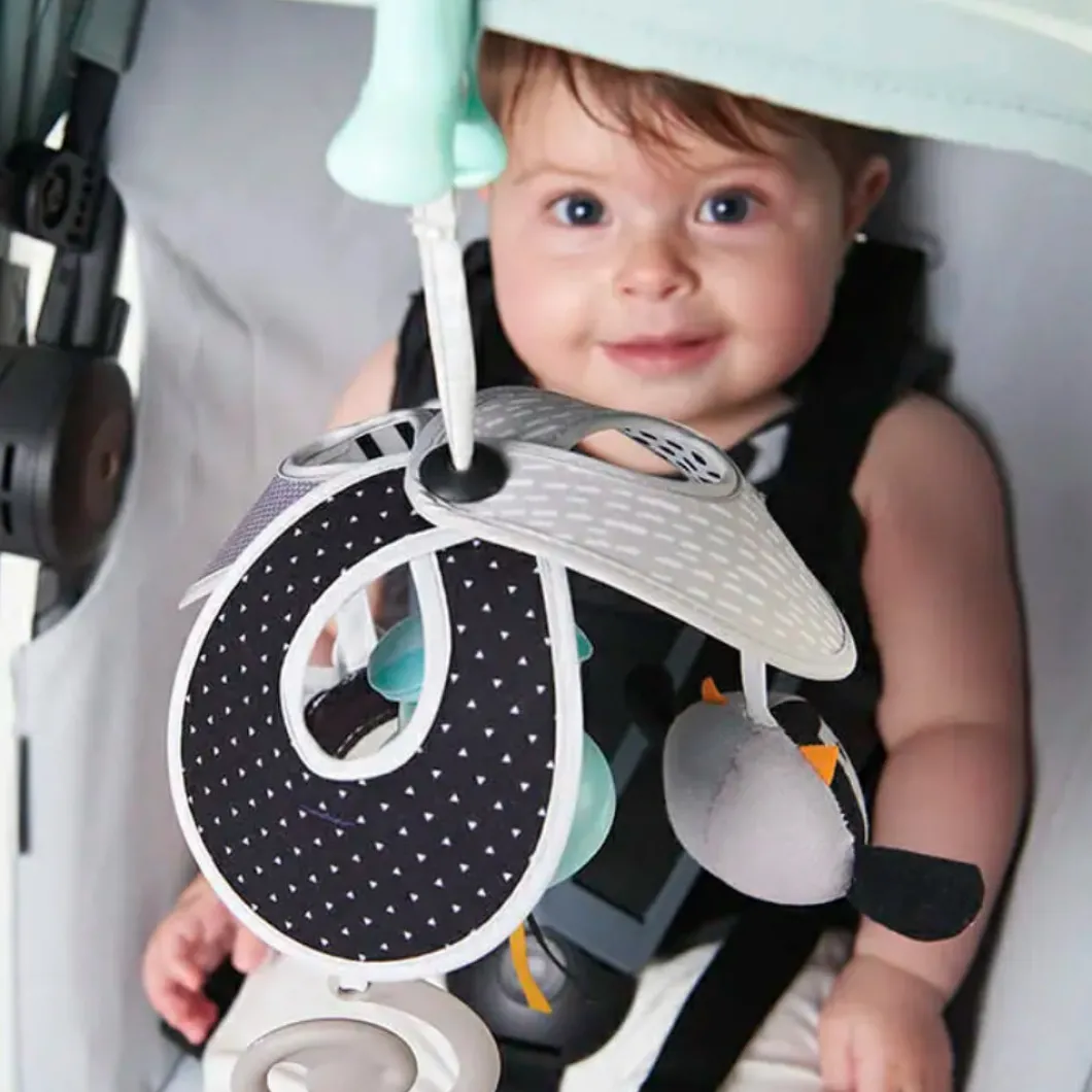 El adorable y elegante juguete presenta un diseño geométrico en blanco y negro para ayudar a estimular la visión de los bebés y brindar mucha diversión, mientras que los simpáticos personajes fomentan los balbuceos y los arrullos.