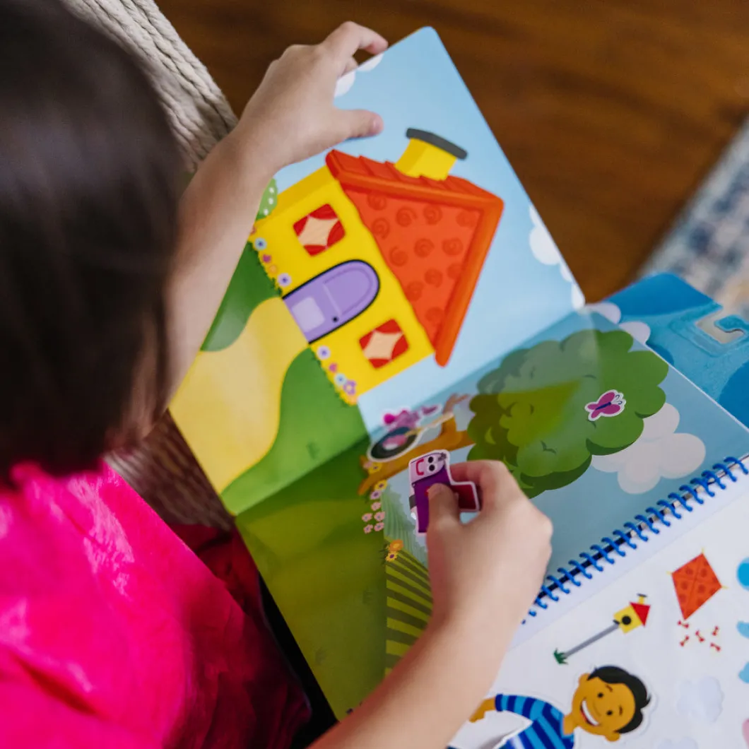 ¡Prepara la escena y despierta la imaginación una y otra vez con Blue’s Clues & You! Almohadilla adhesiva readhesiva. ¡Llena las cinco escenas brillantes desplegables a todo color con 80 pegatinas adhesivas reutilizables con Blue’s Clues & You! amigos y elementos. Cada página tiene una hoja de calcomanías que se pueden volver a pegar a juego, ¡o mezcle y combine calcomanías para crear innumerables escenas personalizadas! Las pegatinas coloridas y aptas para niños se pegan fácilmente, se levantan limpiamente y se guardan cómodamente en la libreta en espiral, lo que la convierte en una excelente actividad de viaje sin problemas para niños de tres años en adelante. ¡Las pistas de Blue y tú! promueve la preparación para el jardín de infantes, inspirando confianza, empoderamiento y amabilidad en los niños en edad preescolar a medida que desarrollan sus habilidades sociales emocionales y de desarrollo a través del juego.