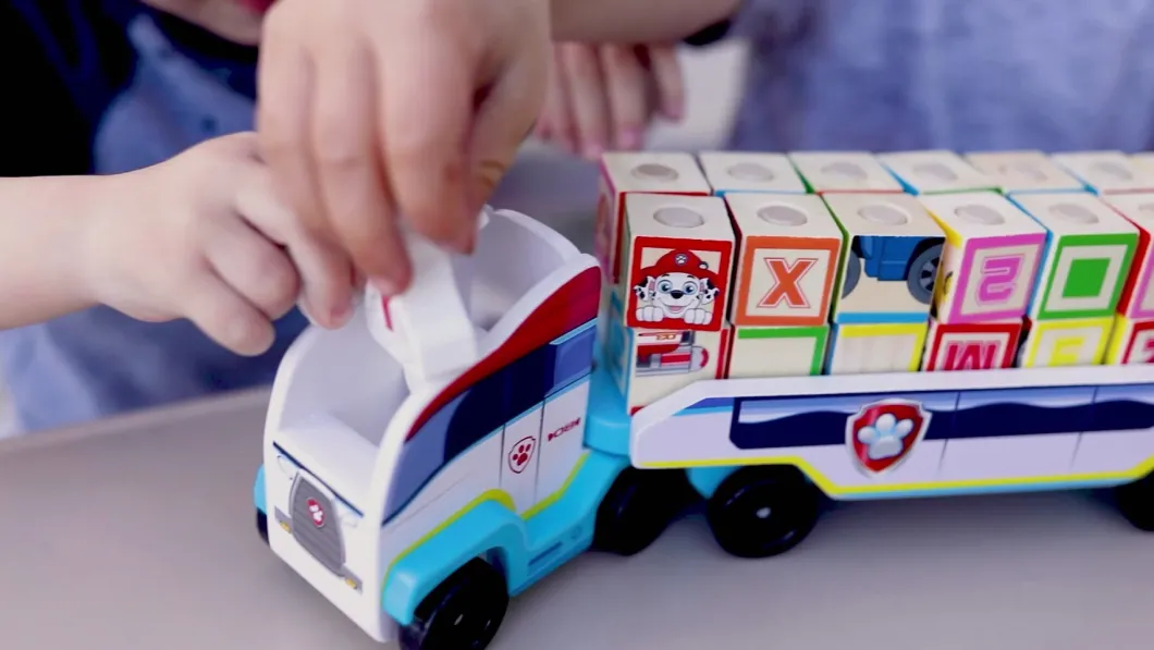 ¡Nuestro popular Camión De Madera Abc De La Patrulla Canina esta de ataque!! este camión de madera gigante y vehículo de remolque construido para transportar 28 bloques de aprendizaje temprano de madera, Los bloques incluyen letras, números, formas, escenas para unir (los bordes están codificados por colores) y personajes de PAW Patrol™. AW Patrol™ siempre está listo para ayudar, inspirando a los niños en edad preescolar con una combinación de trabajo en equipo, aventura y humor a medida que desarrollan habilidades sociales, emocionales y de desarrollo a través del juego.