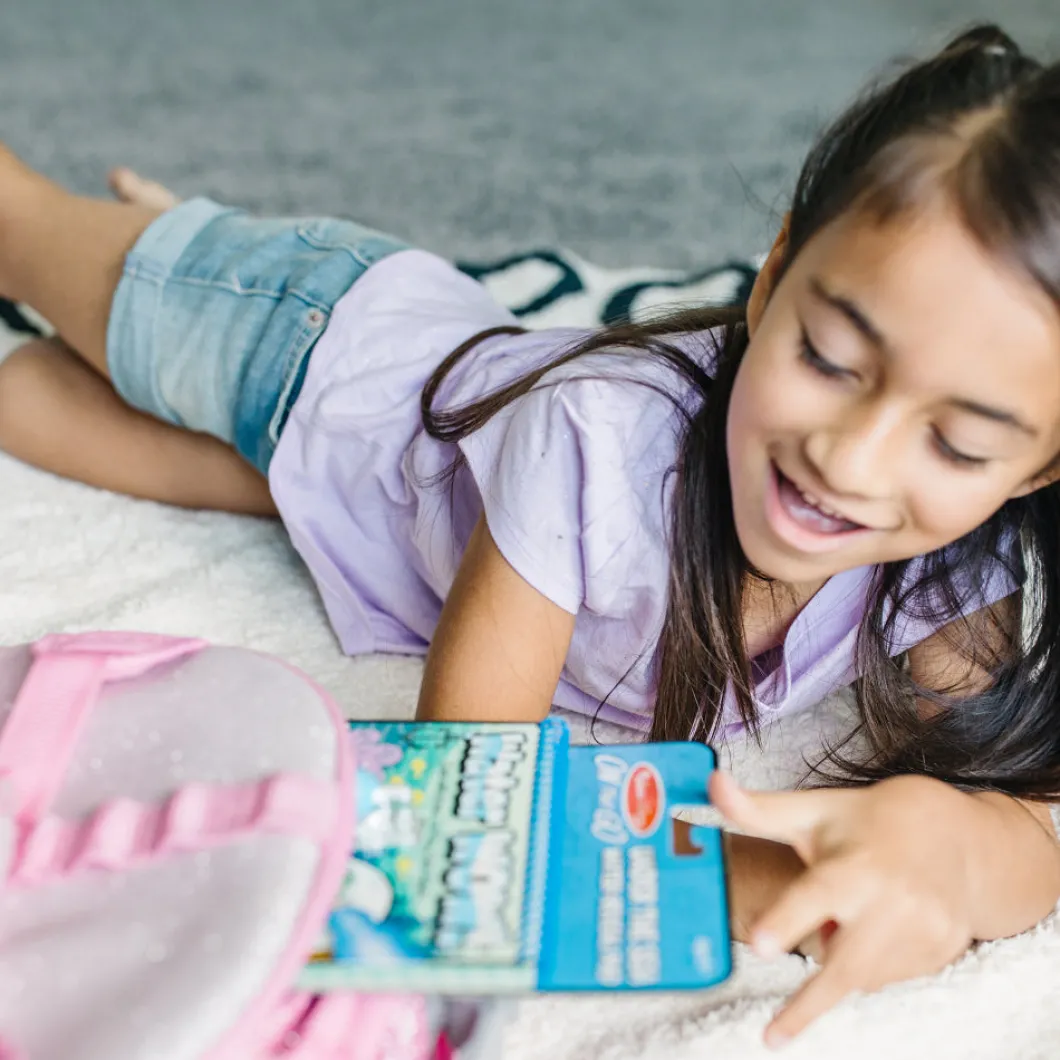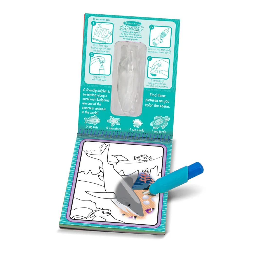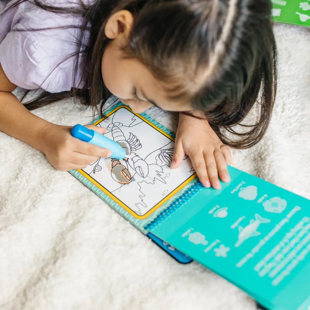 Al secarse la página se borrará las imágenes y estará lista para utilizar una y otra vez. El bolígrafo de agua de tamaño grueso es fácil de sostener para los niños y se guarda perfectamente en la portada. Este libro con temática de Bajo el Mar incluye cuatro escenas para colorear y una actividad de buscar y encontrar para cada escena. Los libros para colorear de viaje de Melissa & Doug están diseñados para ser educativos y entretenidos, ayudando a promover la motricidad fina, la escritura y lectura temprana.