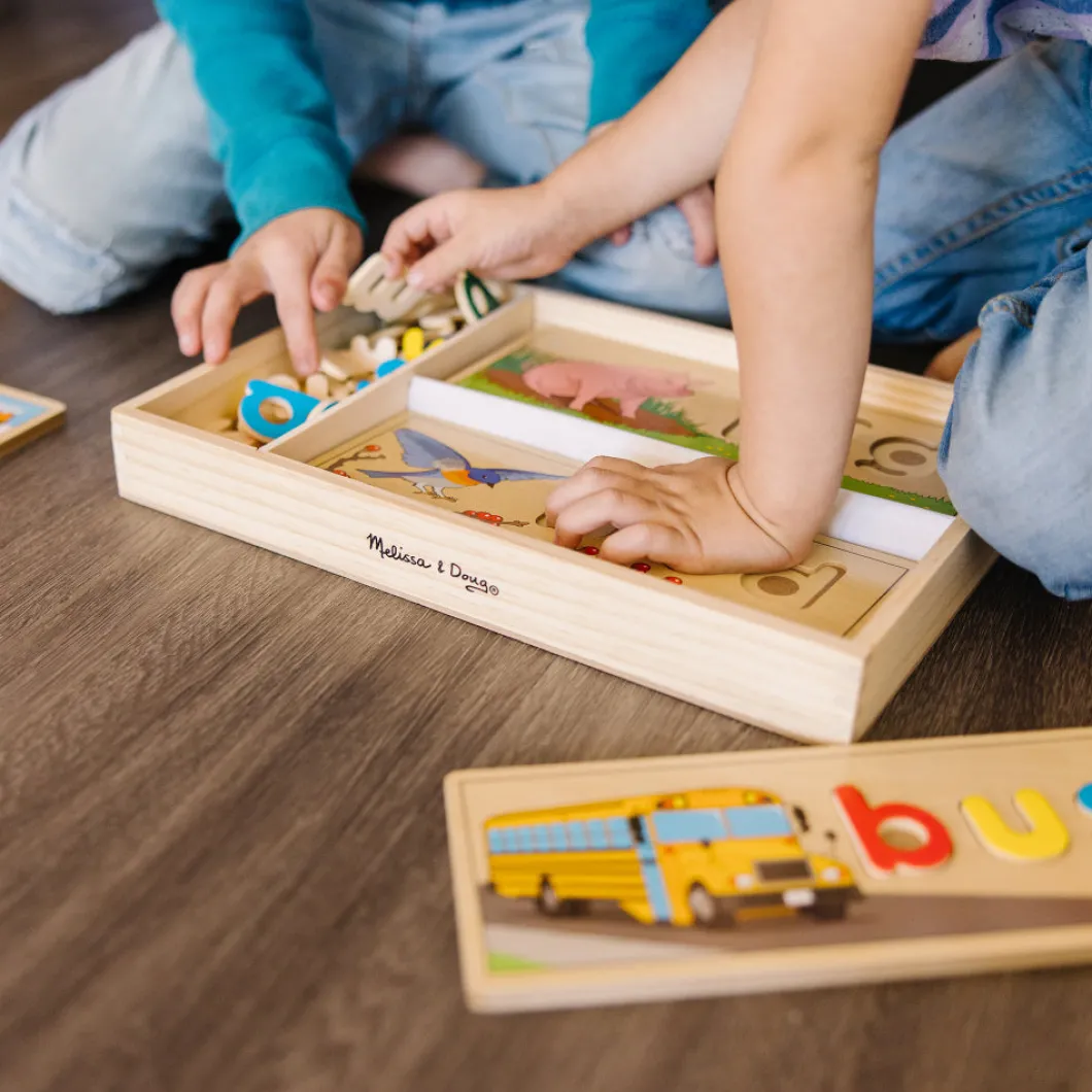 Aprende a deletrear con el increible rompecabezas de Melissa & Doug, encaja las letras de cada palabra de acuerdo a su ilustración, es interacitivo y le enseña a tu hijo a deletrear mientras se divierte, sus piezas de madera hacen que el juego sea duradero y seguro, que no pare la diversión.