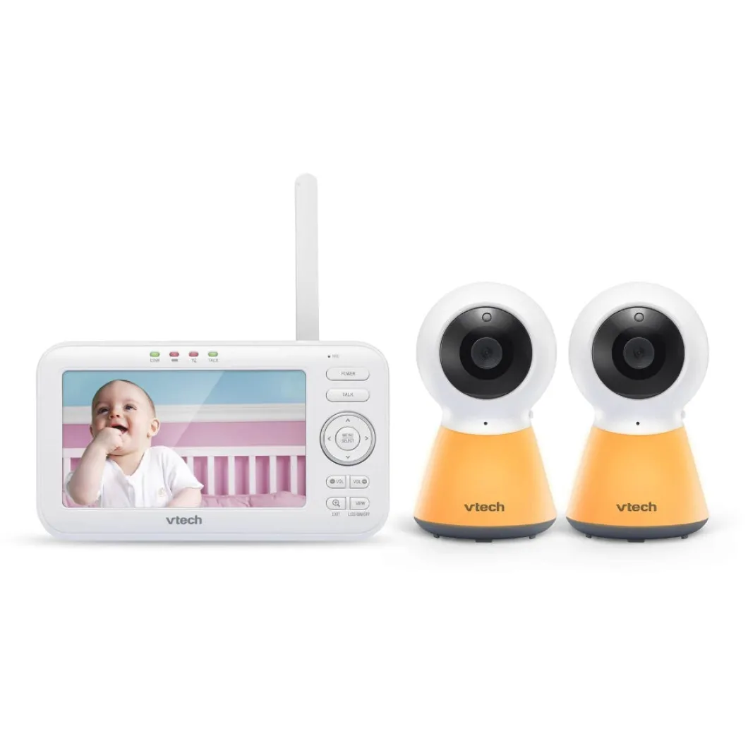 Controle a su pequeño con una gran pantalla LCD de 5 pulgadas en el vigila bebés con video digital VTech VM5254 con luz nocturna. Calme a su bebé con la luz nocturna multicolor, las canciones de cuna y los sonidos suaves que se reproducen directamente desde la unidad para bebés. Además, puede asegurarse de que su bebé esté cómodo controlando la temperatura de la habitación del bebé que se muestra directamente en la gran pantalla LCD de 5 pulgadas. Lo mejor de todo es que puede registrarse durante la siesta o después del anochecer gracias a la visión nocturna automática por infrarrojos.