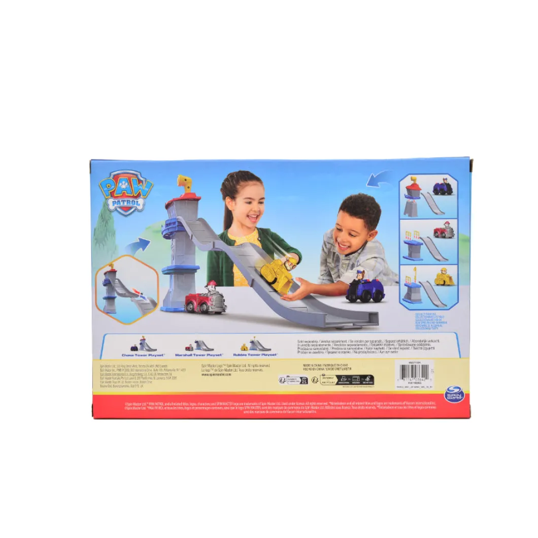 ¡Vive nuevas aventuras con tu patrulla canina favorita! Este playset combina 3 mini torres con los mini vehículos de tus cachorros favoritos Chase, Marshall y Rubble, tambien puedes jugar con cada una de las torres por separado, recrea las mejores escenas y salva la ciudad. Es el set perfecto para que tu colección de Paw Patrol siga creciendo ¡La diversión y la imaginación no terminan! Cada vehículo incluye al personaje con detalles únicos y su uniforme distintivo.